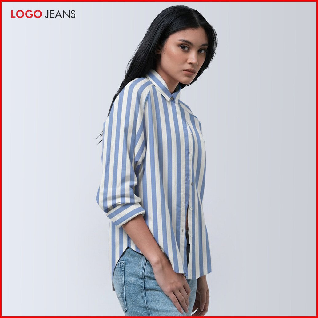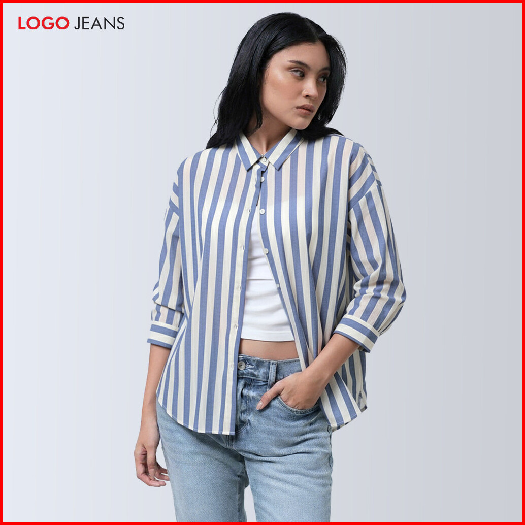 Logo Jeans Kemeja Wanita Griffyn Blue White 24a58l5bi