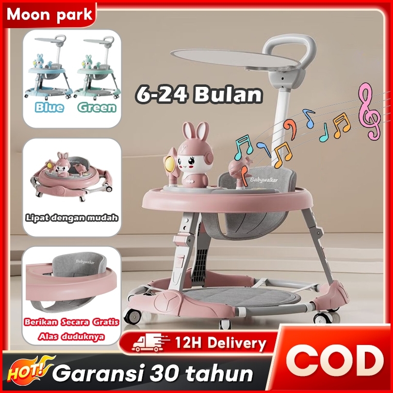 Beige Baby Walker Alat Belajar Jalan Dapat Dilipat Portabel Bayi Kotak Musik Perlengkapan
