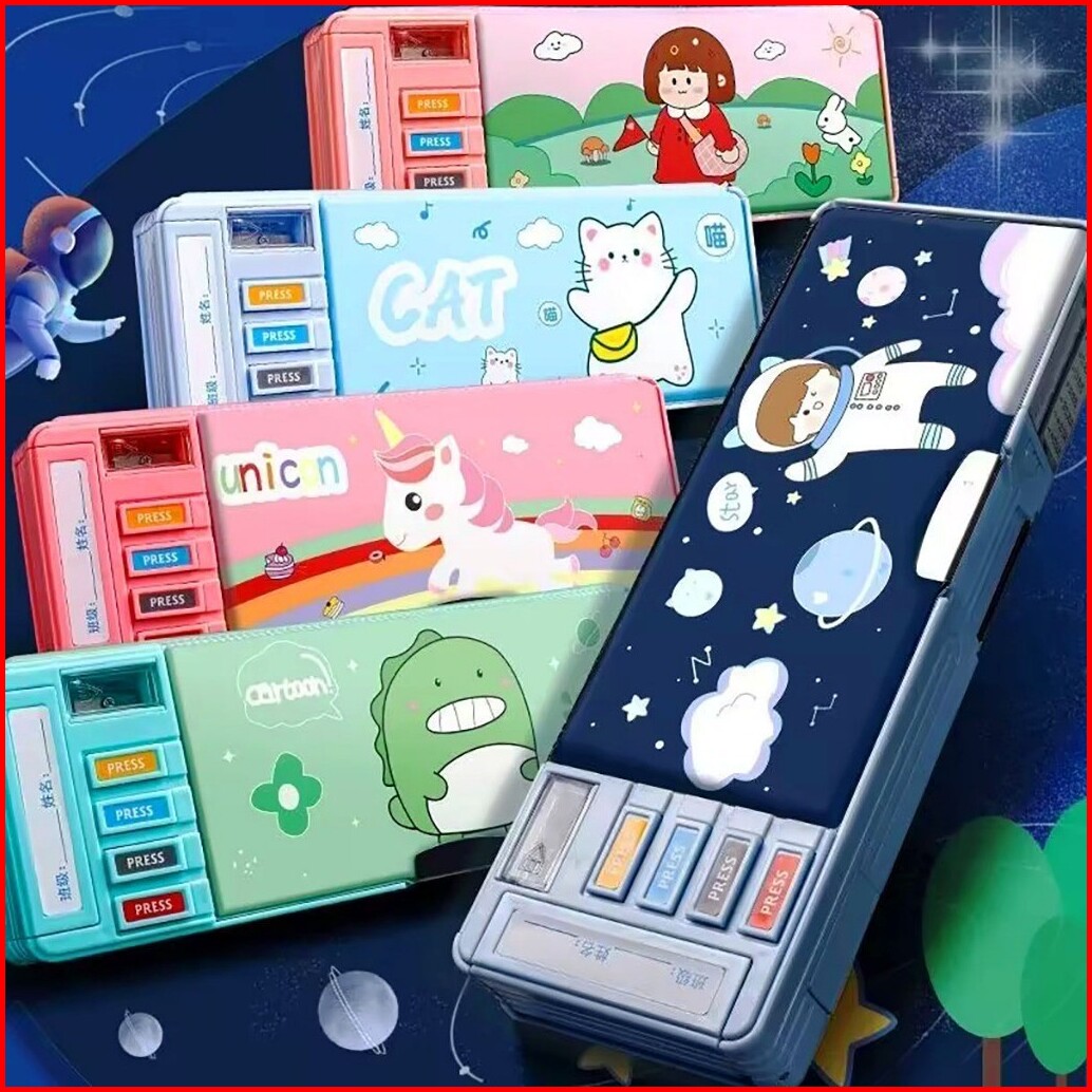 Kotak Pensil Plastik Multifungsi Tas Pena Kotak Pensil Kata Sandi Multifungsi Kotak Penyimpanan Tempat Pensil Alat Tulis
