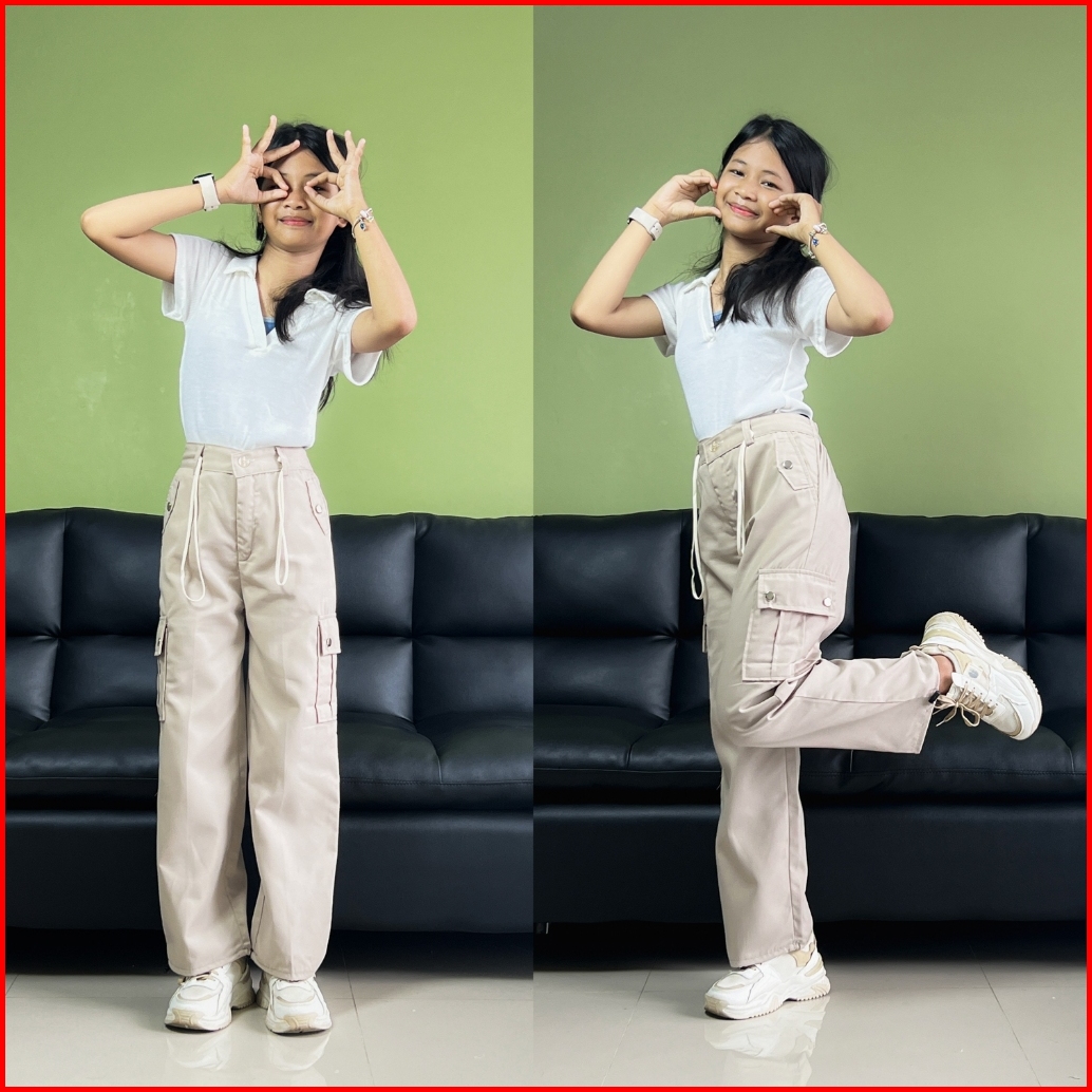 Futi Id - Keyla Kids Celana Cargo Anak Wanita Korean Style Usia 10 - 13 Tahun