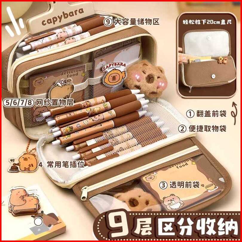 Kapibara Tempat Pensil Sekolah 95 Pcs Capybara Tempat Alat Tulis Kotak Pensil Tas Penatempat Pencil Tas Pensil Kapasitas