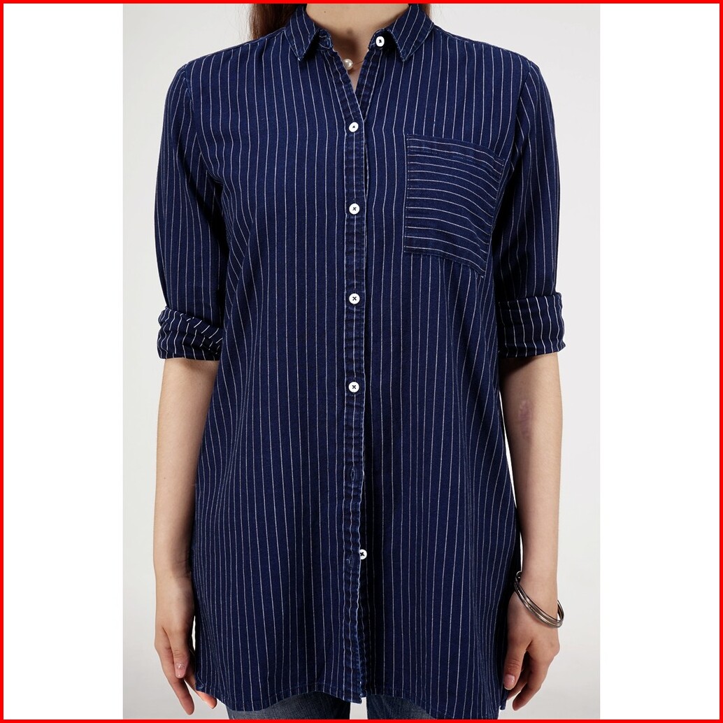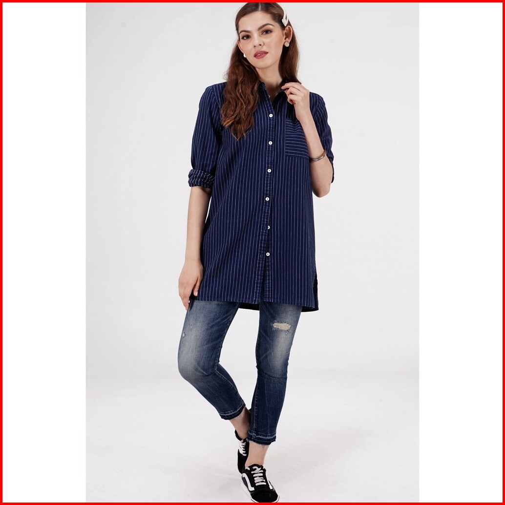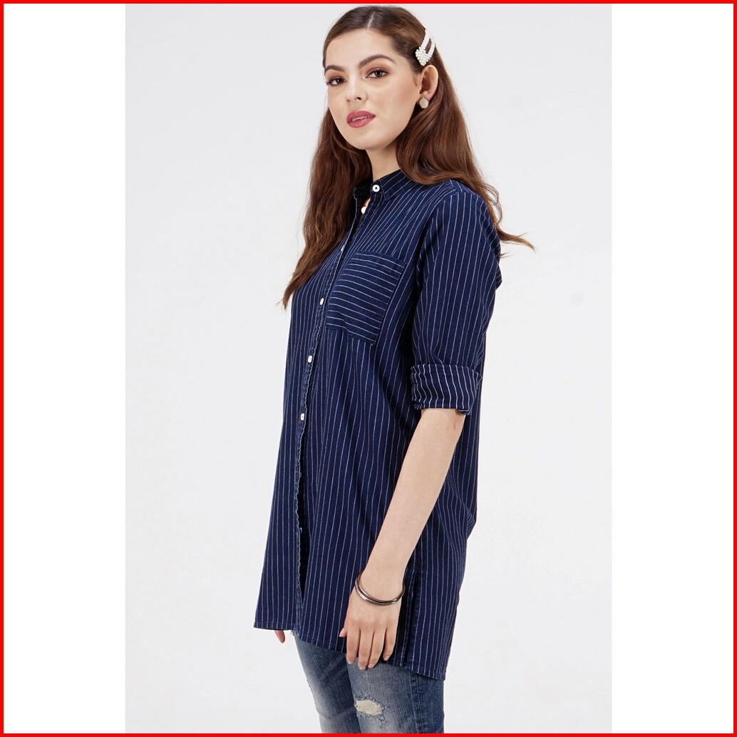 Ninety Degrees Kemeja Wanita Picko Navy White 24594d2nw