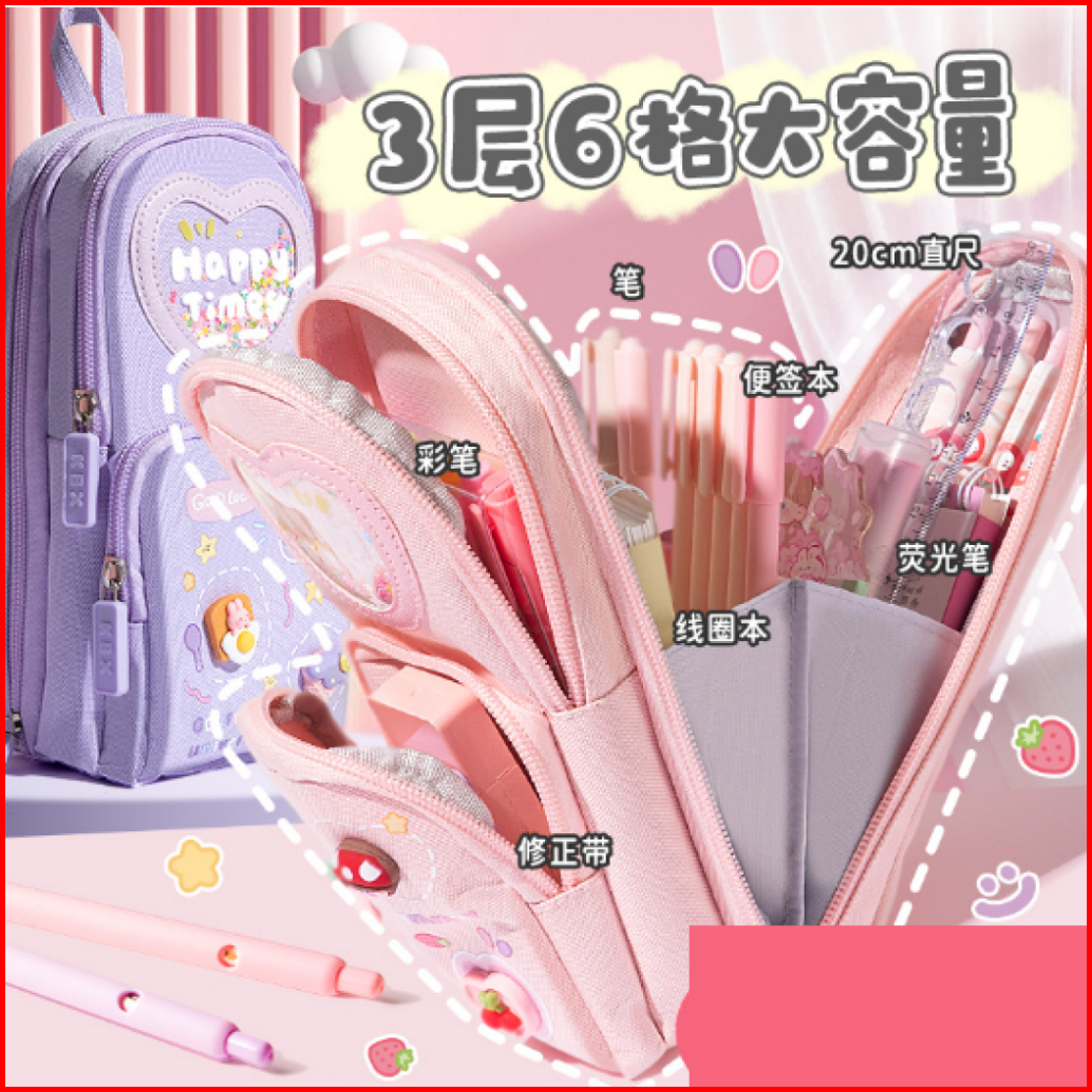 Tempat Pensil 3d Anak Lucu Sekolah Karakter Serbaguna Kapasitas Besar Aesthetic 6 Sekat