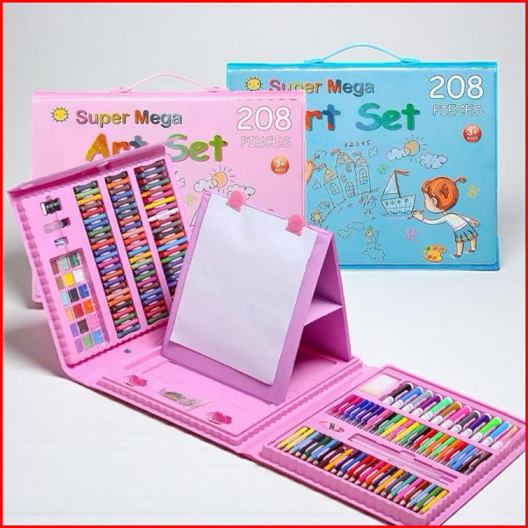 208 Pcs Super Mega Art Set Crayon Anak Set Koper Full Set Alat Lukis Anak Cat Krayon Pensil Warna Isi 208 Pcs