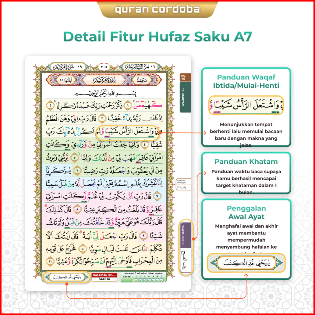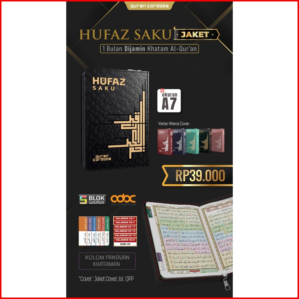 Al-quran Hufaz Saku A7 Jaket Resleting - Hafalan Mudah 5 Blok Warna Tajwid Waqaf Ibtida - Cordoba