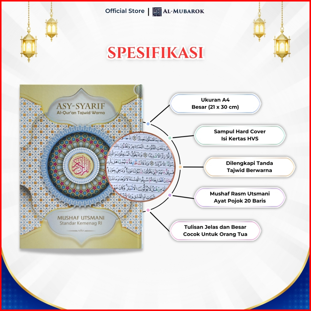Al Quran Asy Syarif A4 Custom Nama Mushaf Alquran Non Terjemah Tajwid Warna 20 Baris Ukuran Besar