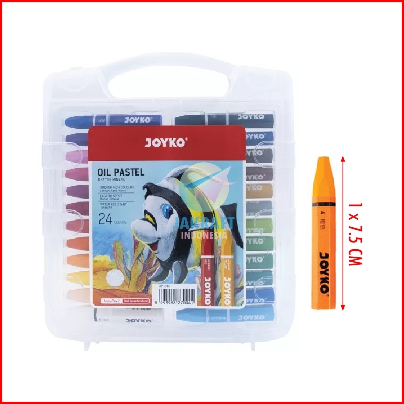 24 Pcs Krayon 24 Warna Joyko Op-24s Oil Pastels Crayon Aman Murah Anti Air Hard Case