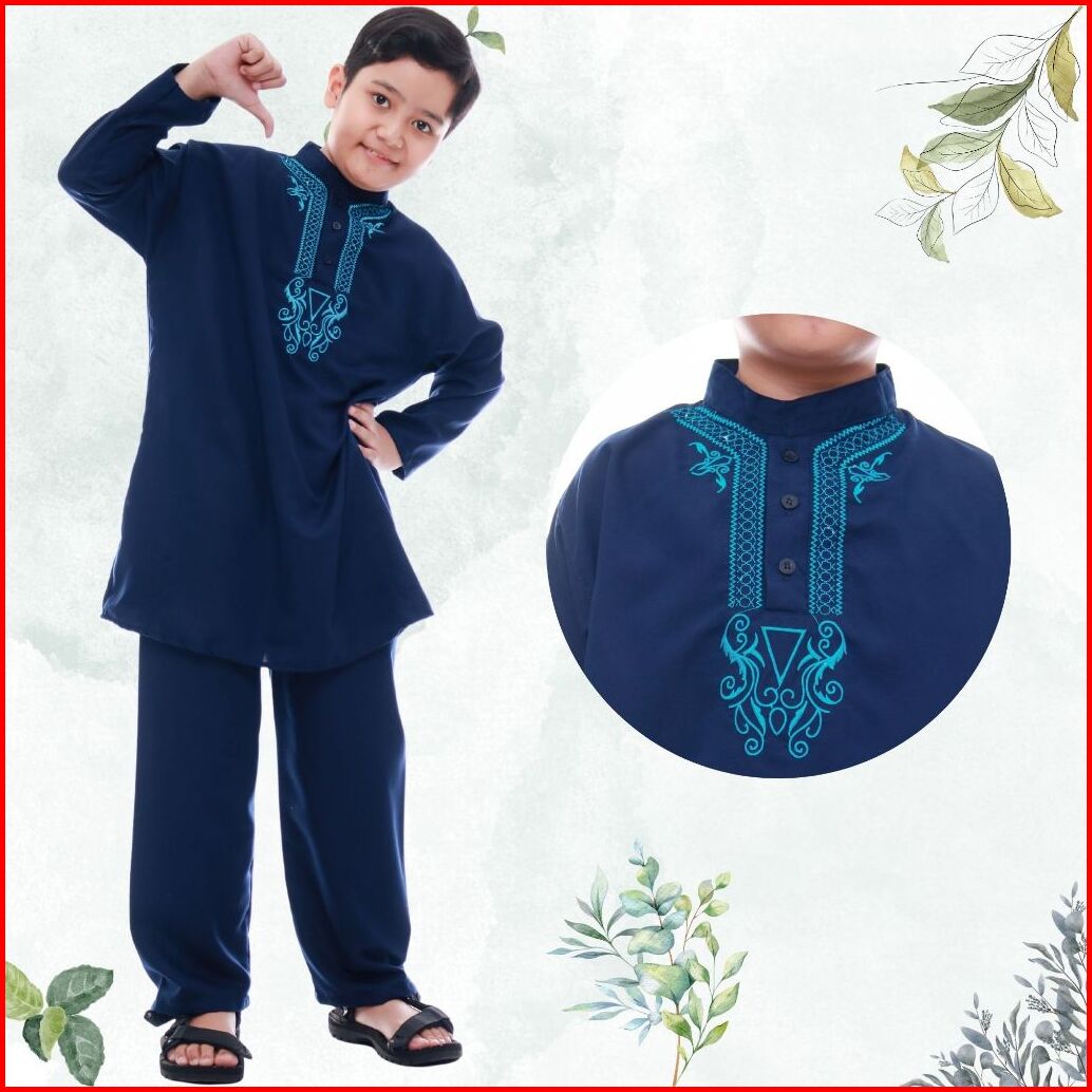 Setelan Kemeja Koko Anak Kurta Lengan Panjang Bahan Katun Motif Bordir Umur 3 Hingga 16 Tahun Murah