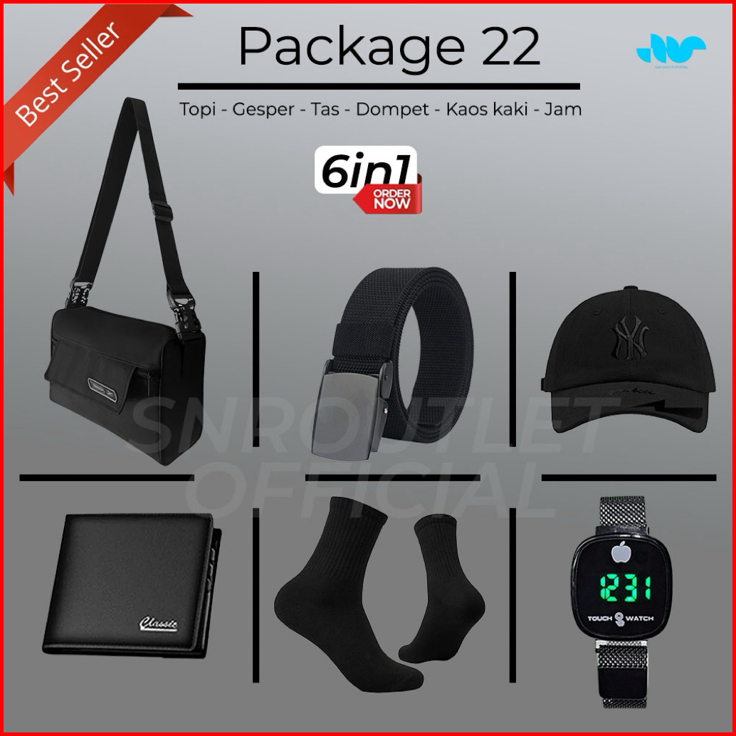 Paket Combo Termurah 6in1 Beli Tas Selempang Pria Dapatkan Beberapa Item Unik Keren Lainnya