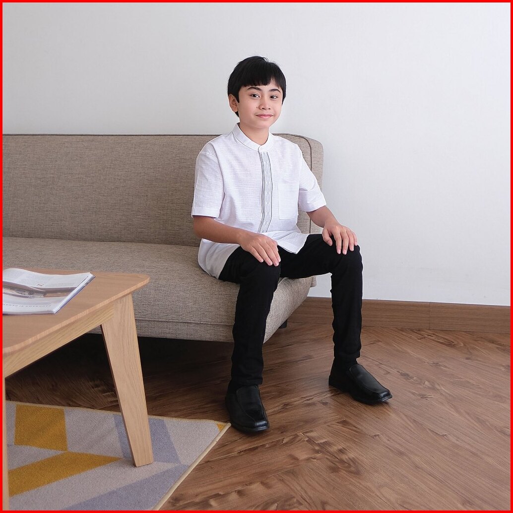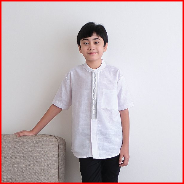 Loa Studios - Baju Koko Kemeja Anak Bordir Lengan Pendek Putih - Kanz Kids