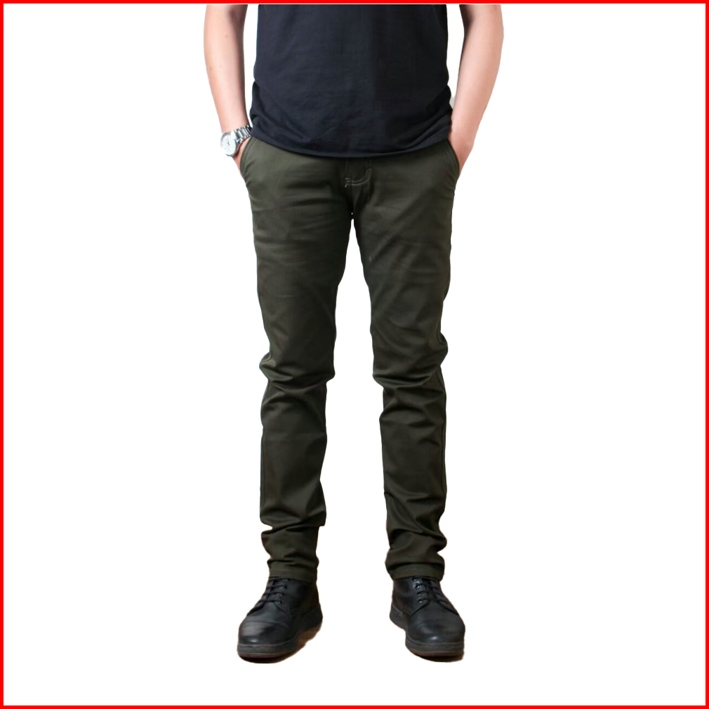 Rayxran Celana Chinos Panjang Pria Basic Green Army Slimfit Stretch