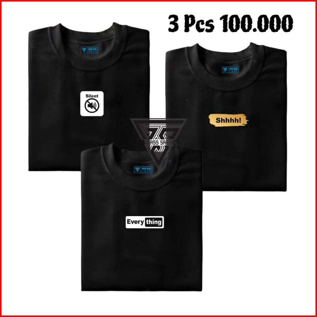 Grass Sabik - 1 Paket Isi 3 Pcs Kaos Keren T-shirt Premium Baju Artikel Everthing-silent-shhh