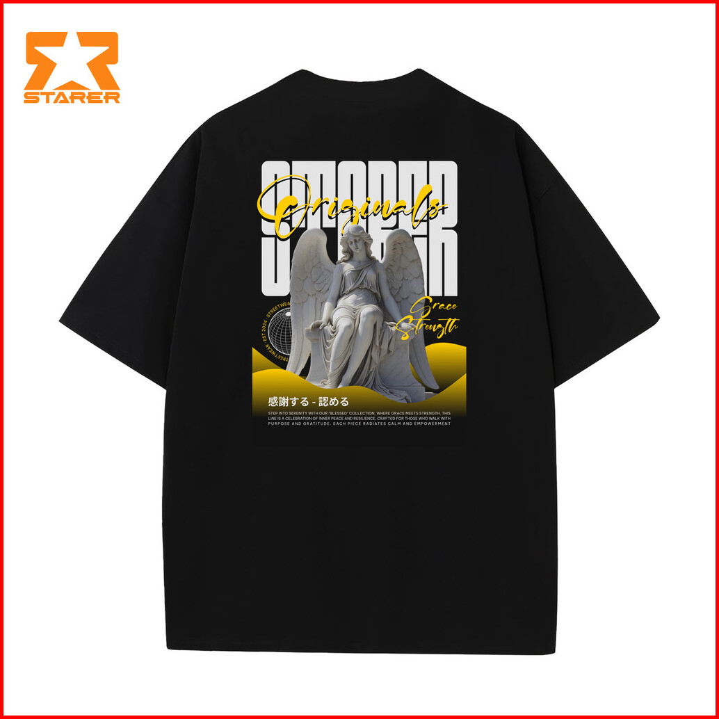 Starer Kaos Pria Distro Lengan Pendek Cotton Lembut T-shirt Black Baju Combed Fit Sablon 0055