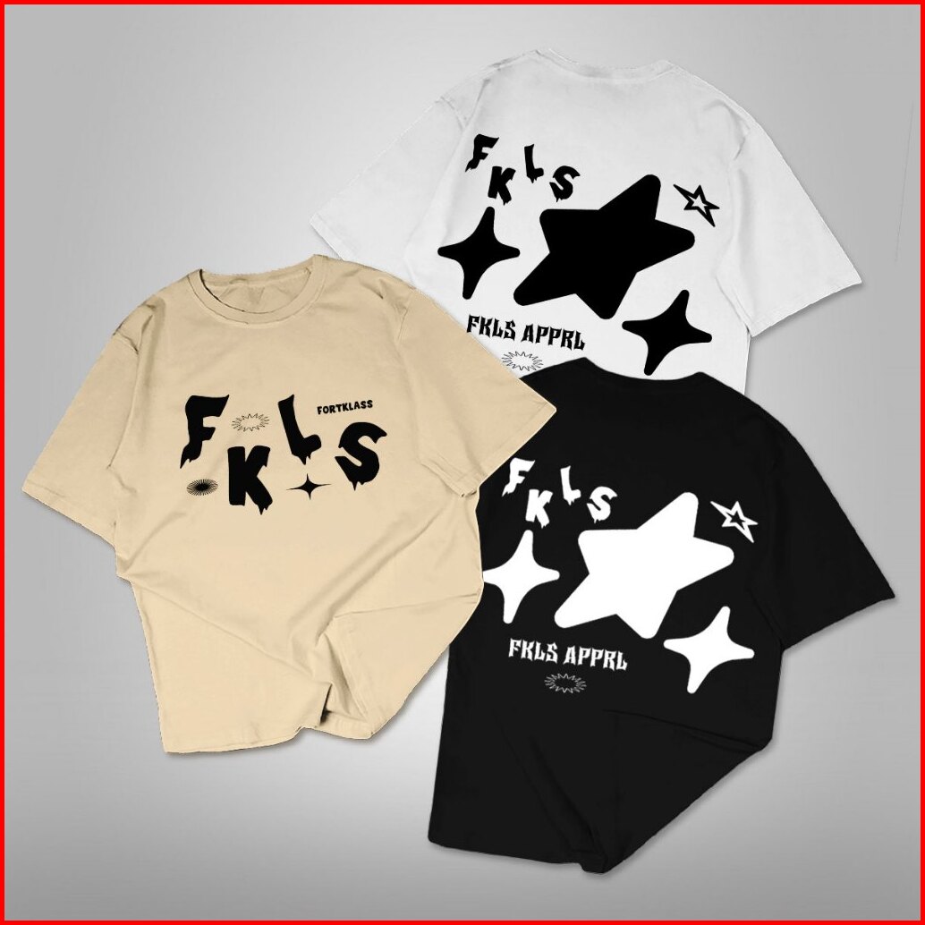Fortklass Kaos Star Regular Fit Kaos Sablon 24s 30s Kaos Pria Lengan Pendek Atasan Tshirt Distro