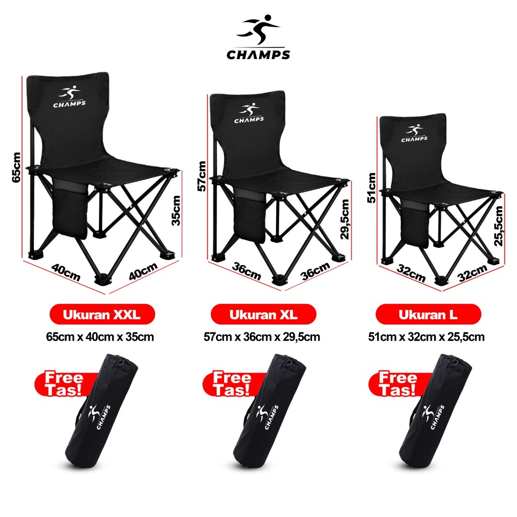 CHAMPS Kursi Lipat Camping & door – Bangku Portable Ringan untuk Gunung, Kemah, Folding Chair