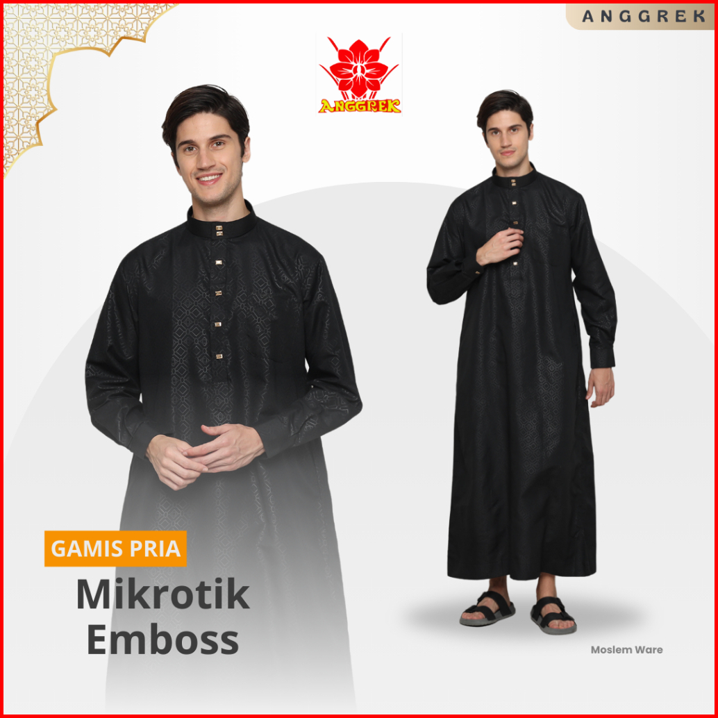 Anggrek - Gamis Mikrotik Jubah Pria Muslim Lengan Manset Premium Gamis Cowok Slimfit Katun Embos