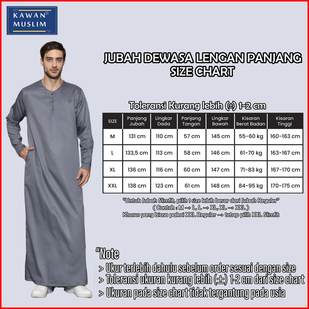 Kawan Muslim - Jubah Gamis Pria Dewasa Terbaru Umroh Haji Lengan Panjang Katun Toyobo Premium Km23