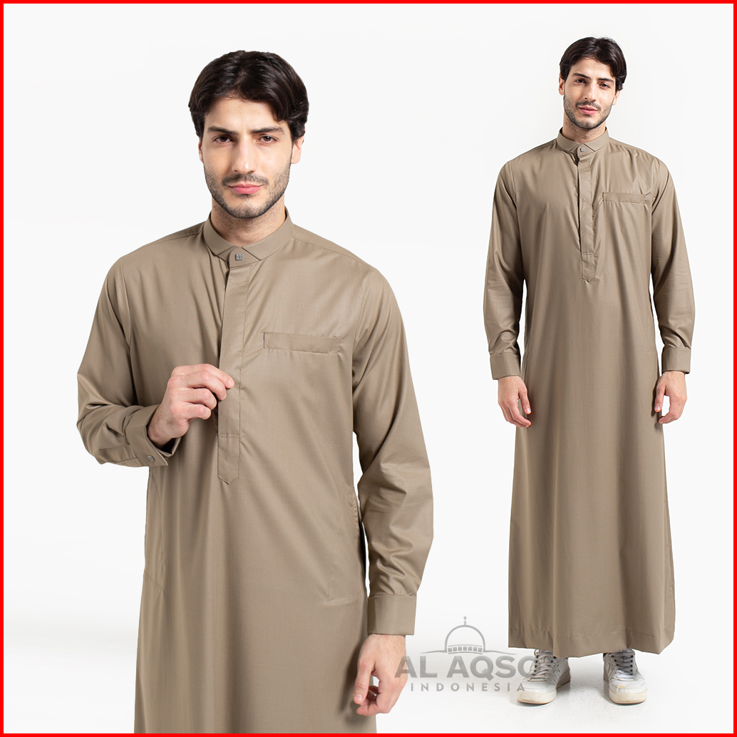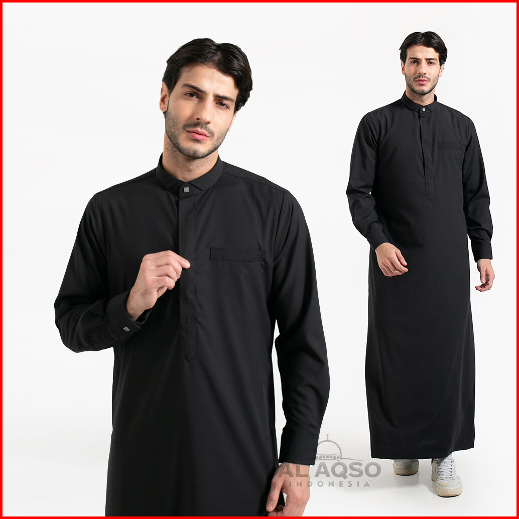Al Aqso Tencel Jubah Reguler Thobe Gamis Pria Muslim Dewasa Premium Navy Abu Hitam Lengan Panjang Jubah Majeed