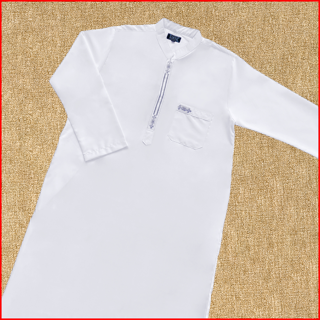 Kawan Muslim-jubah Gamis Sholat Motif Bordir Pria Dewasa Lengan Panjang Bahan Adem Katun Toyobo Premium Putih