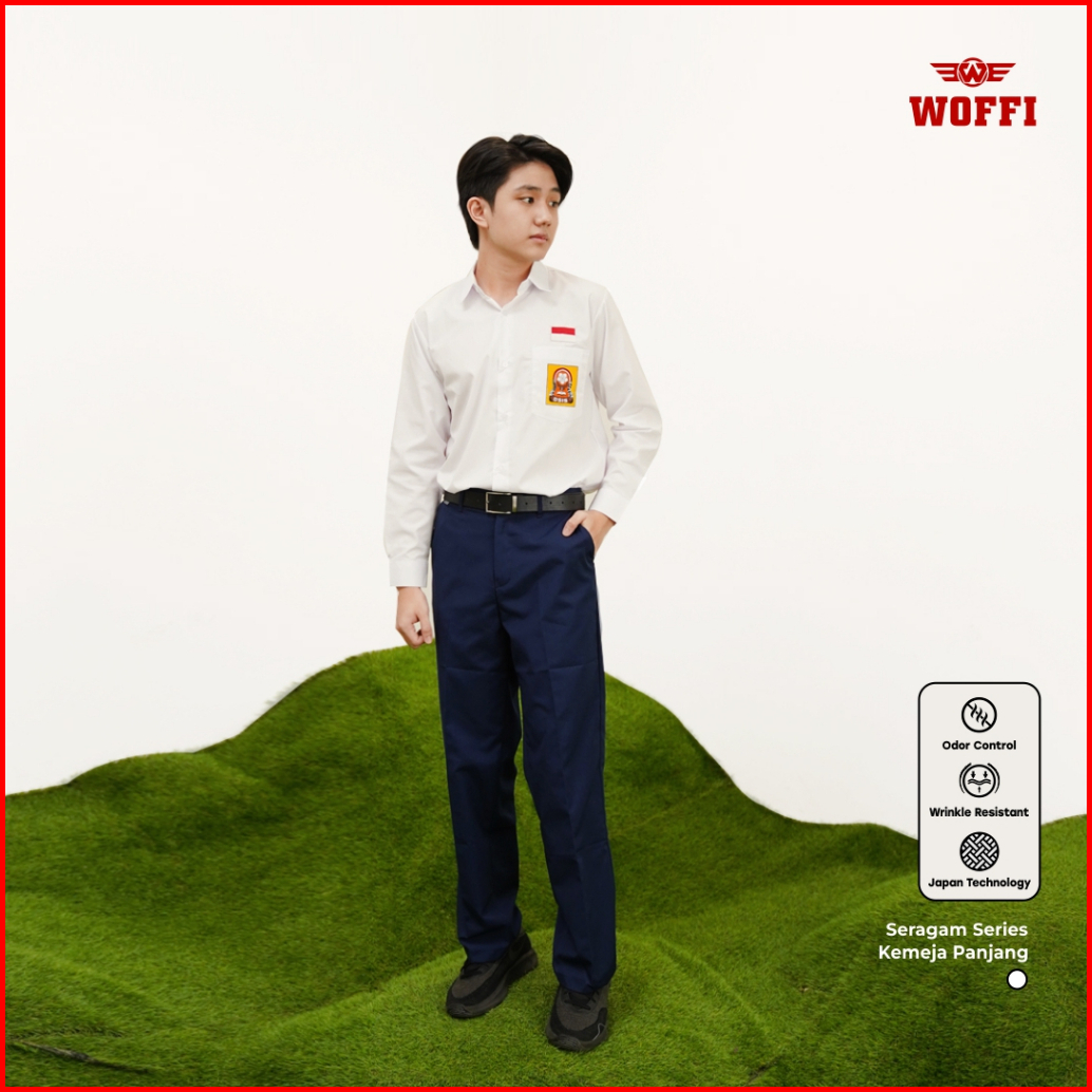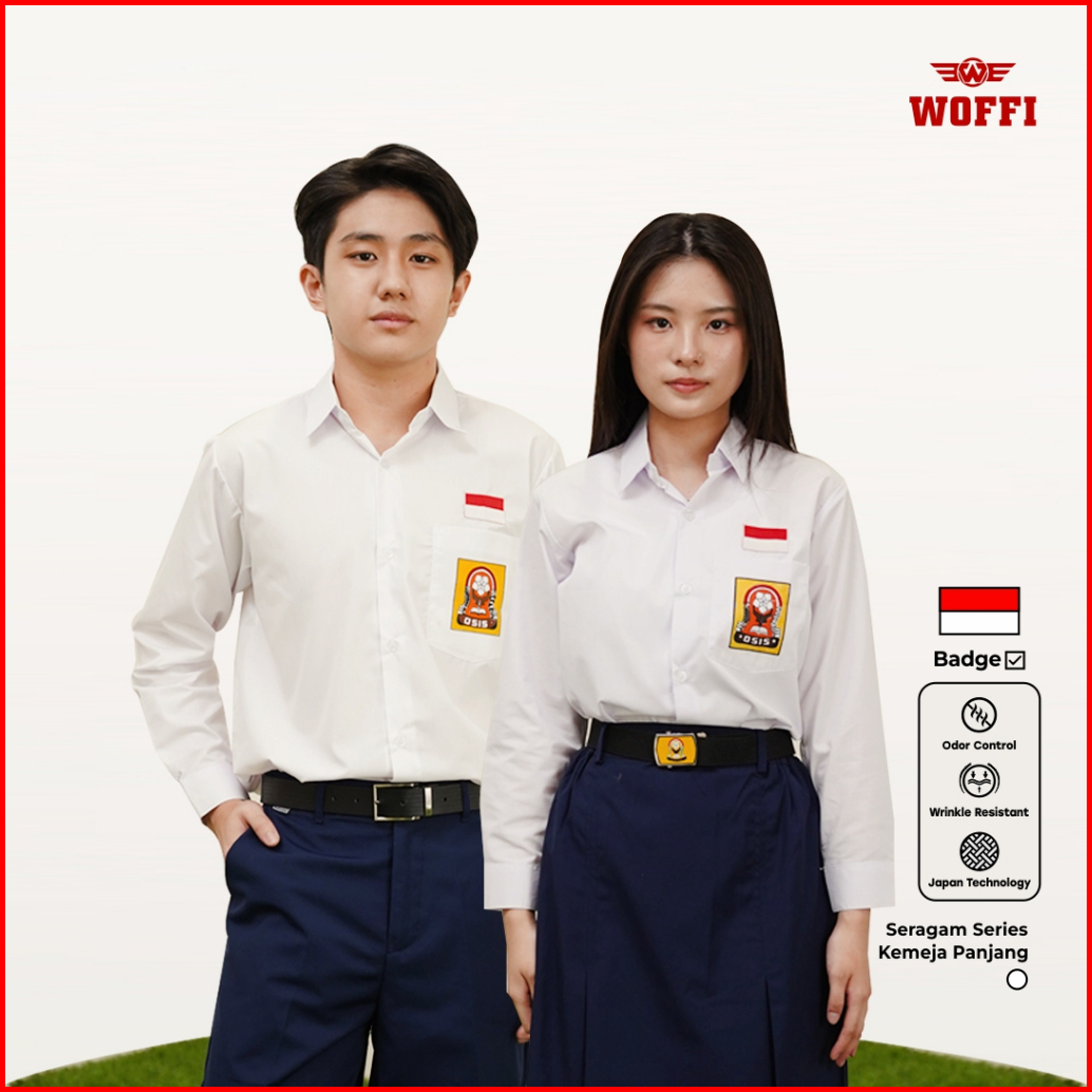 Seragam Smp Woffi Kemeja Panjang Badge Special Edition Putih