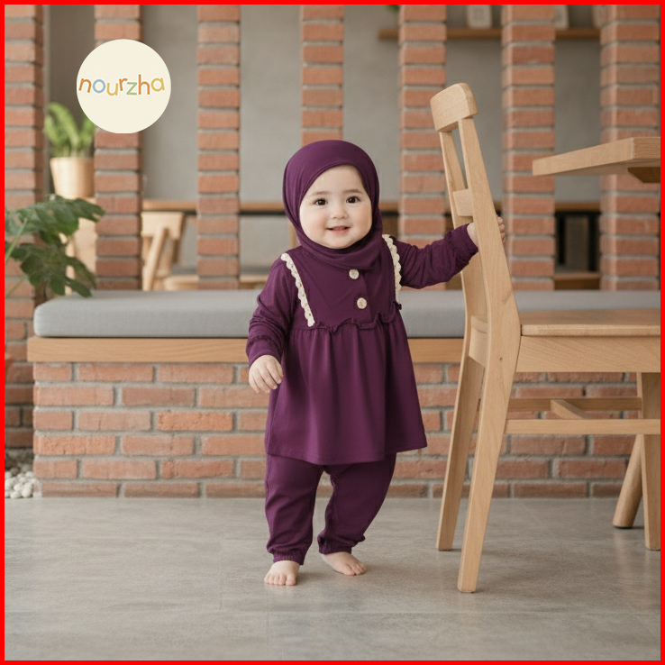 Nourza Setelan Gamis Bayi Perempuan Muslim 0-18 Bulan