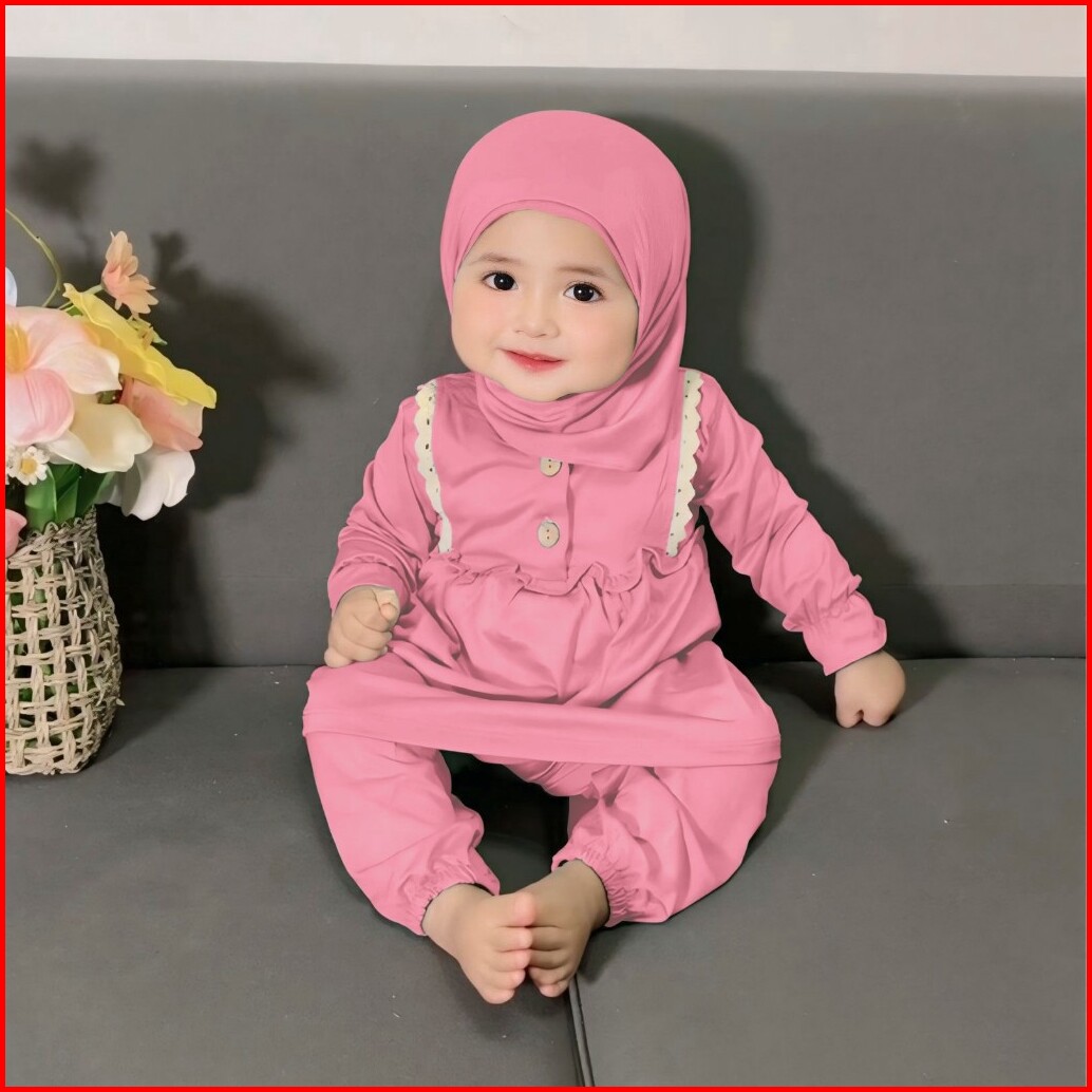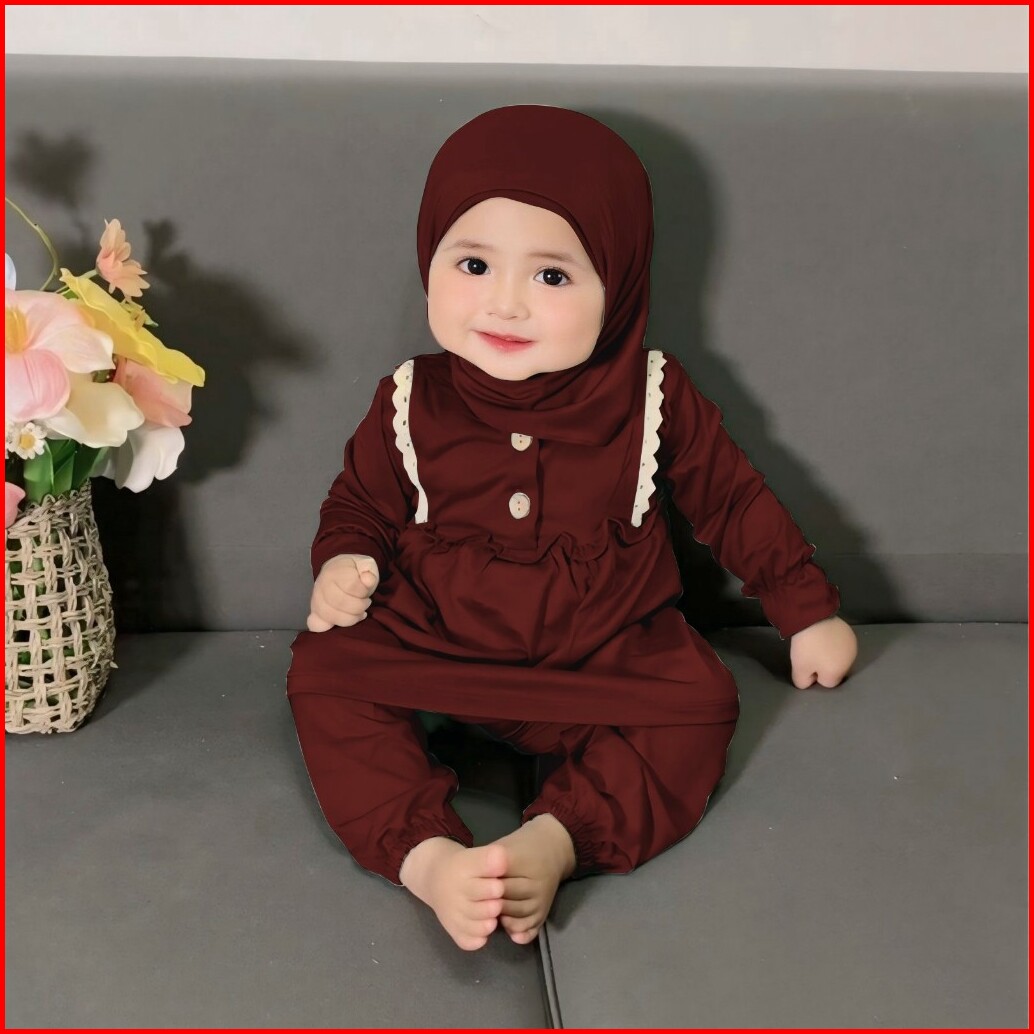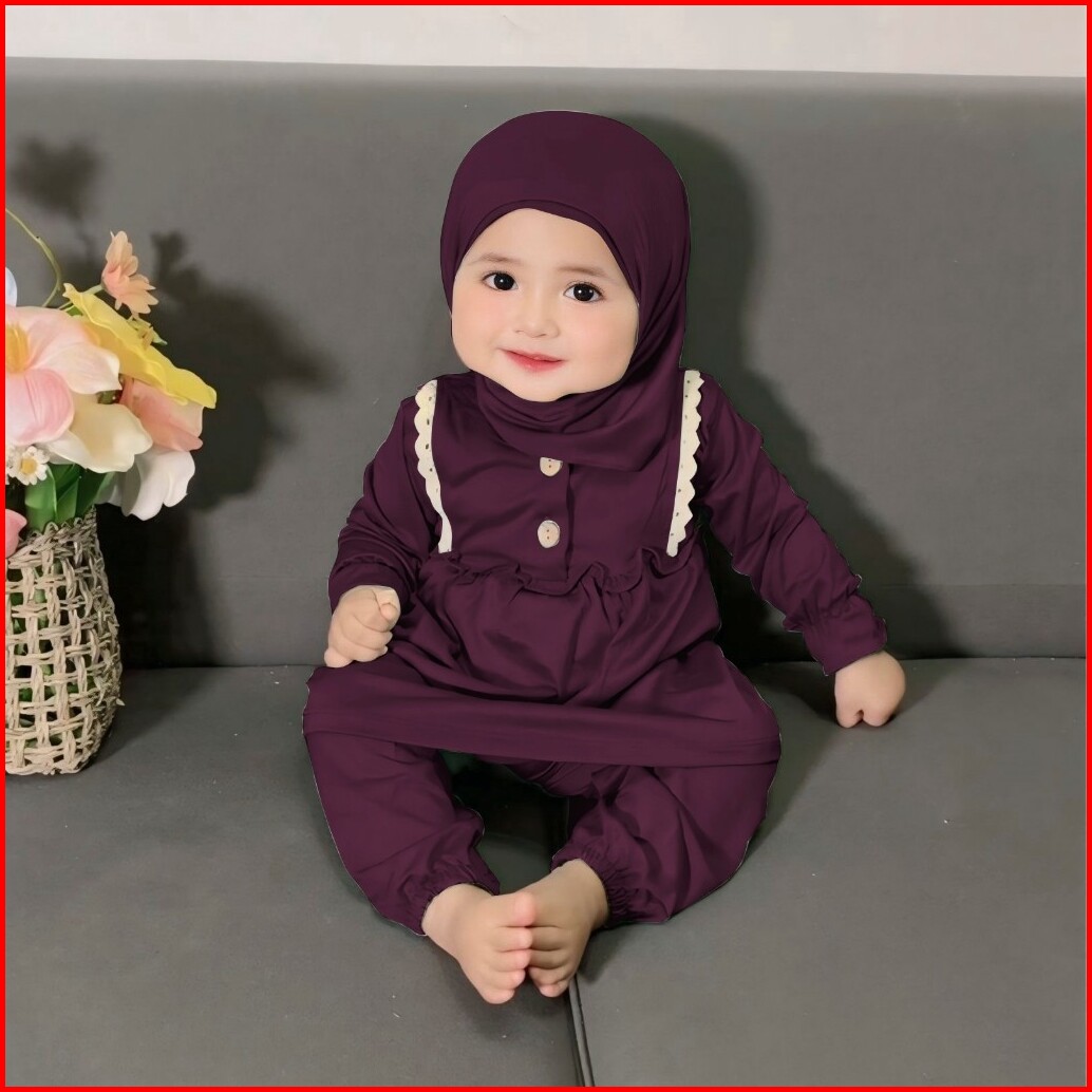 Nourza Set 0m 2y Malika Baby Gamis Hijab Setelan Tunik Hijab Lebaran Anak Malika Set Raya Series Keluarga Pakaian Muslim