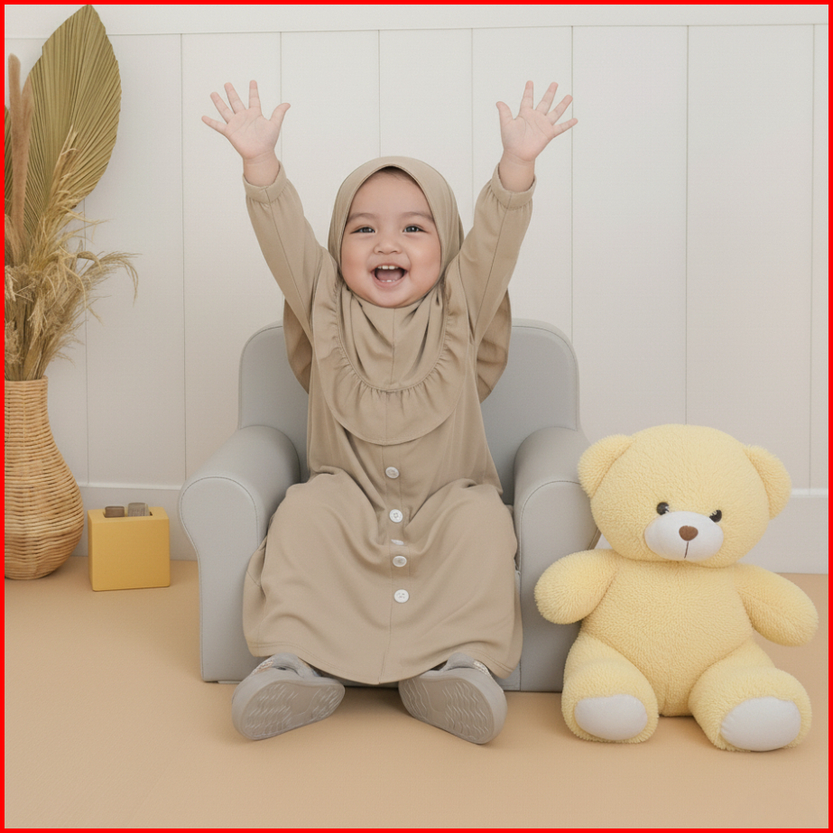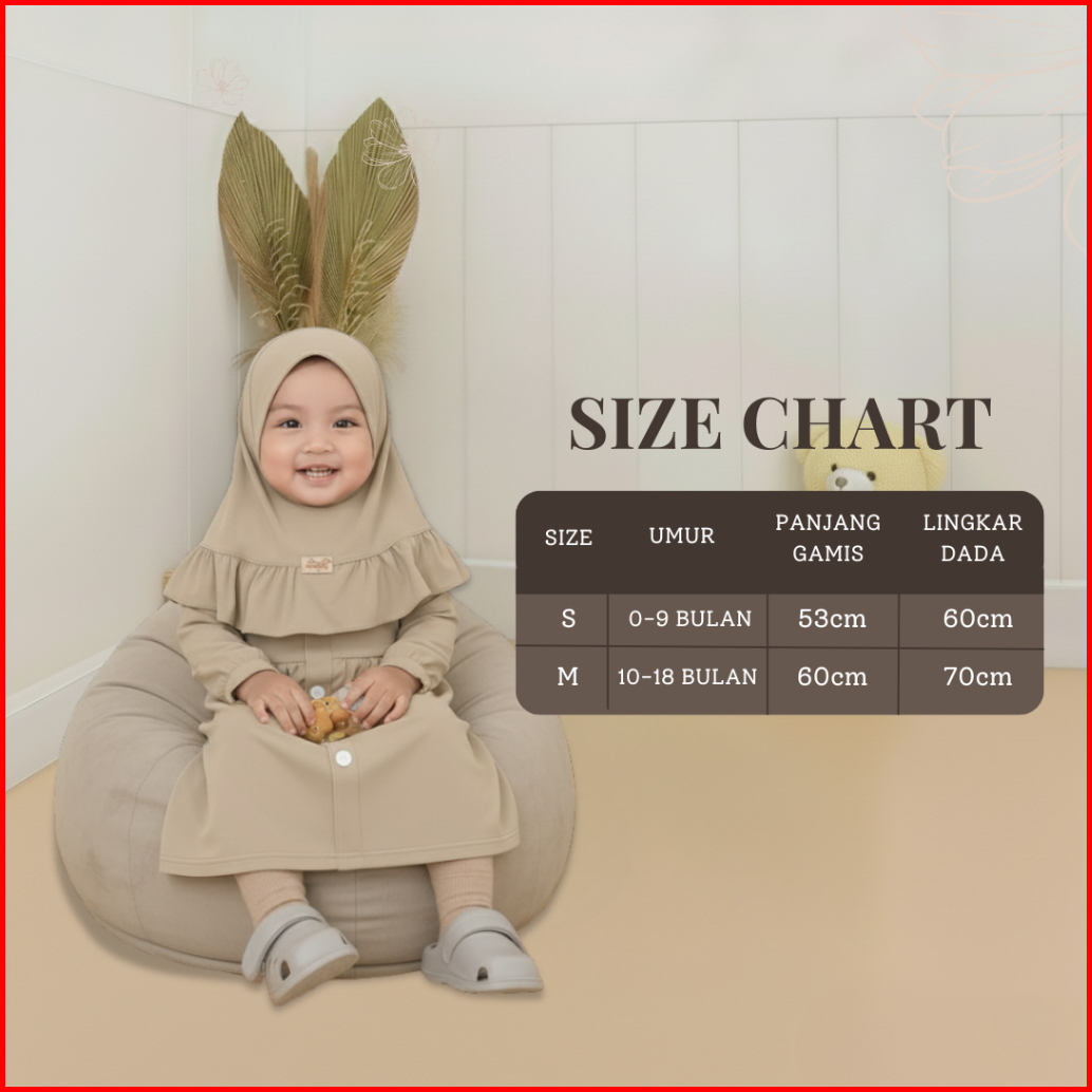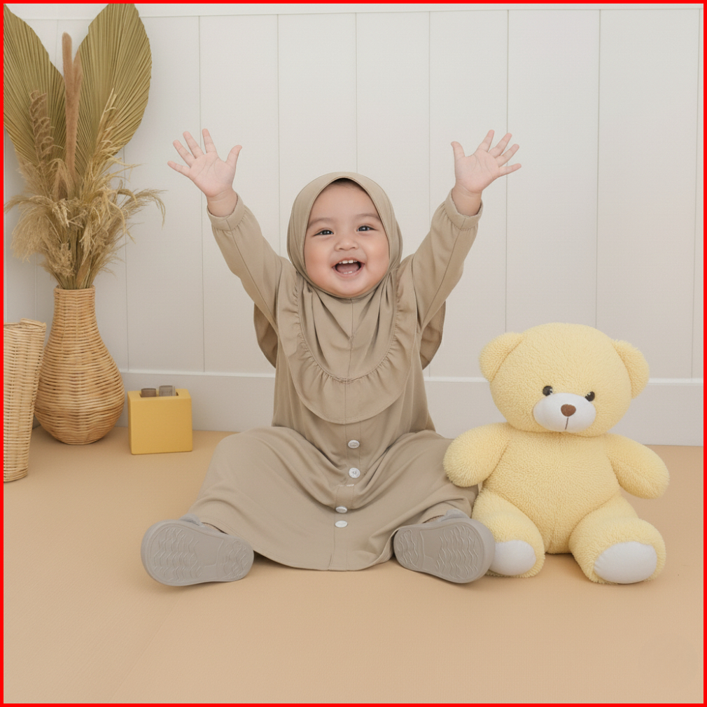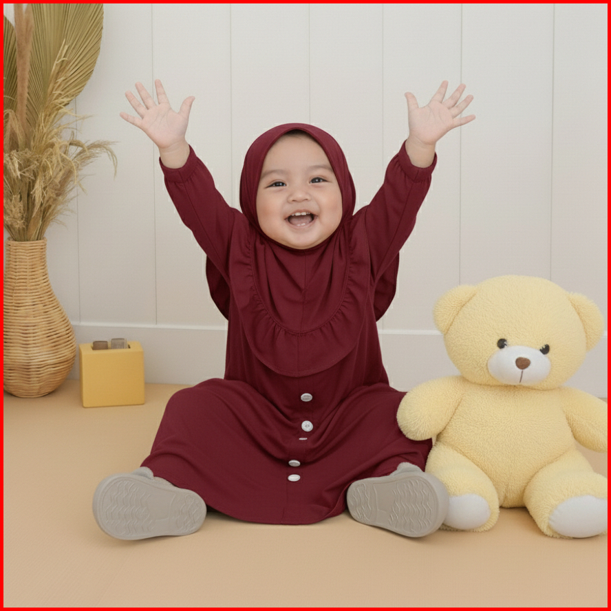 Kalissa - Gamis Bayi Perempuan Newborn Set Hijab 6 12 Bulan - 2 Tahun
