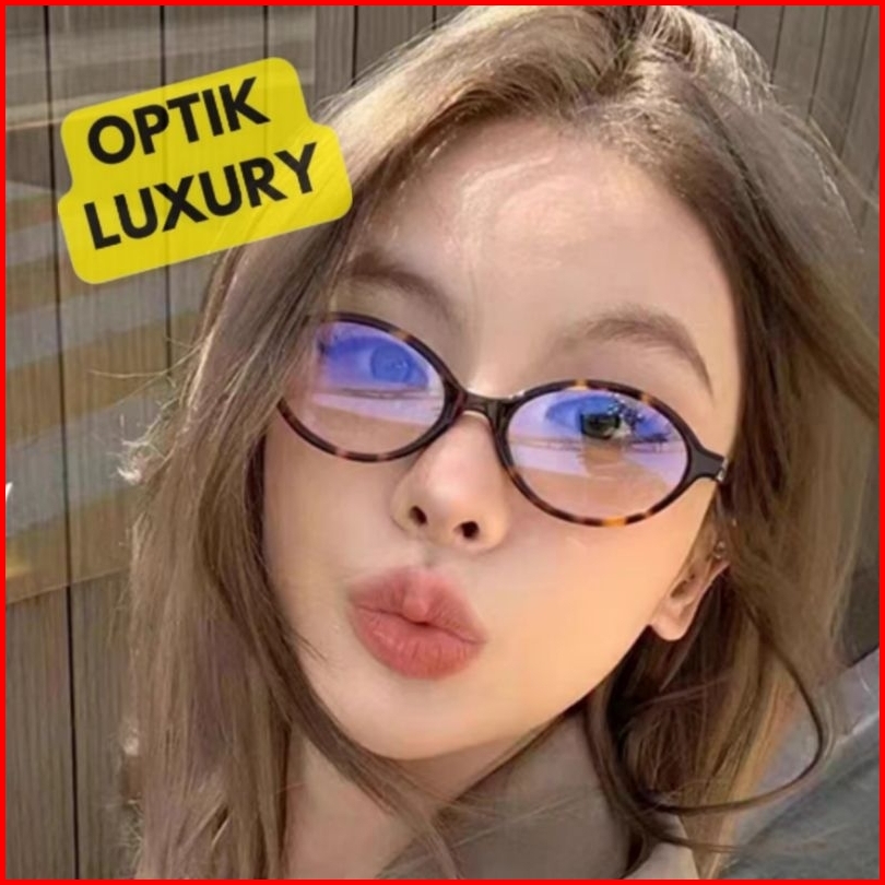 Kacamata Minus Wanita Round Oval S Antiradiasi Blueray Costum Lensa Normal Minus