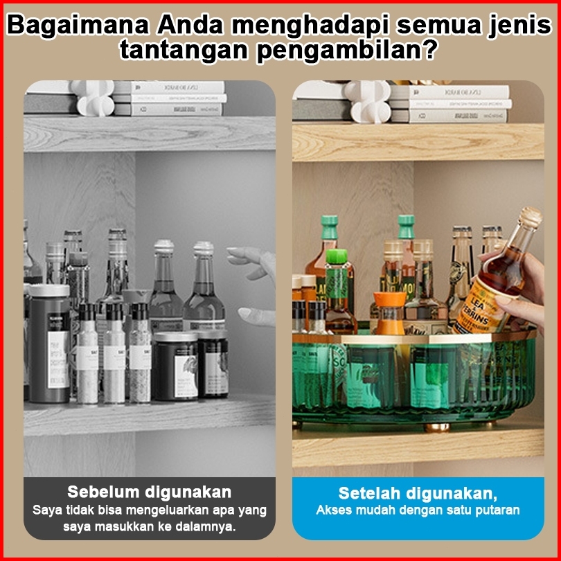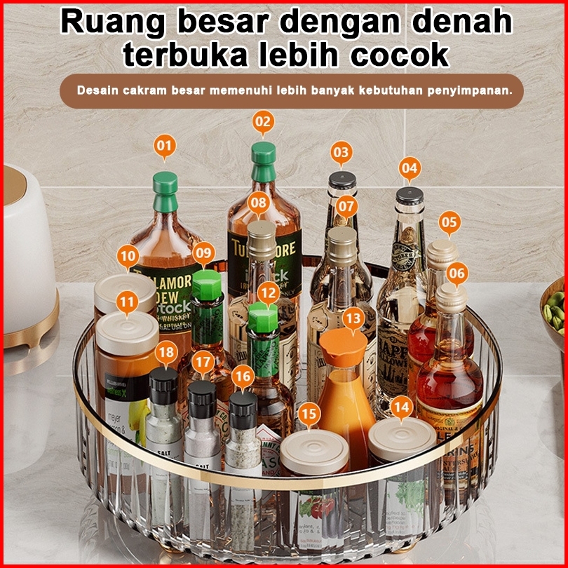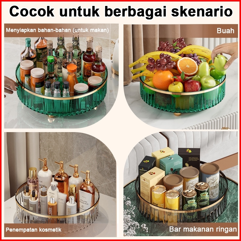 Rak Wadah Tray Putar Transparan Mewah 360 Untuk Kosmetik Buah Bumbu Dapur Makanan Minuman Ringan
