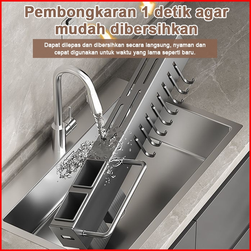 Rak Dapur Stainless Steel Multifungsi Rak Alat Makan Serbaguna Rak Sendok Garpu Pisau Tempel Dinding