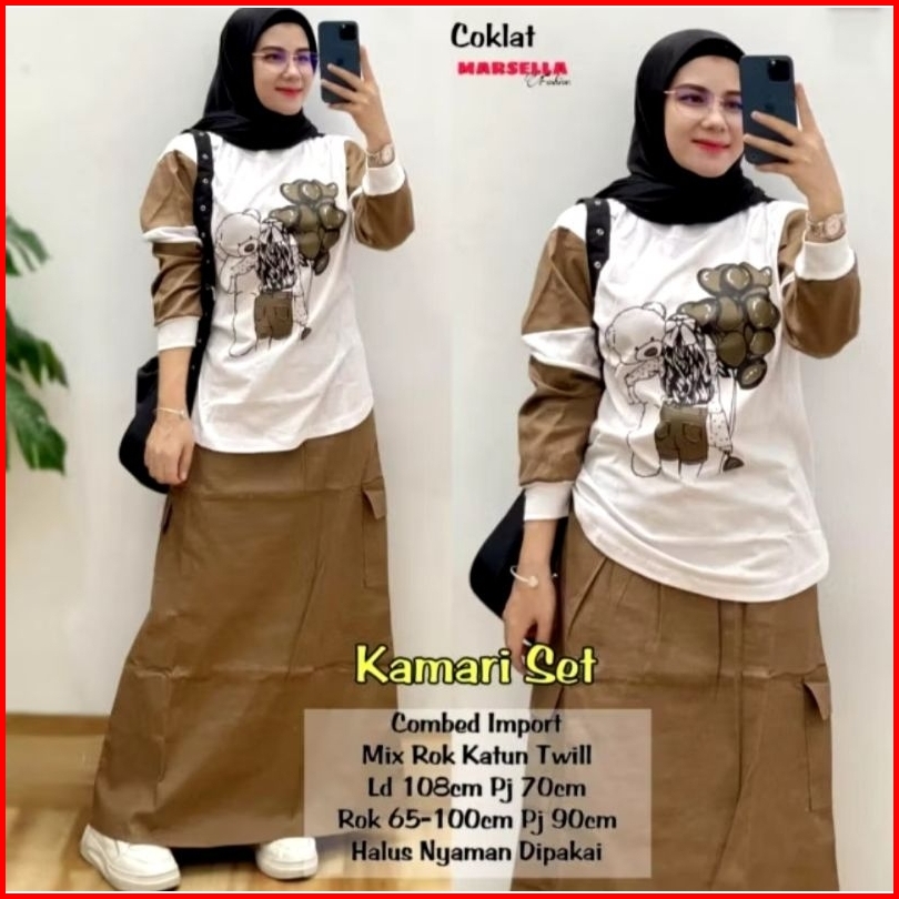 Kamari Set Set Rok Kaos Combad Chinos Katun Twill