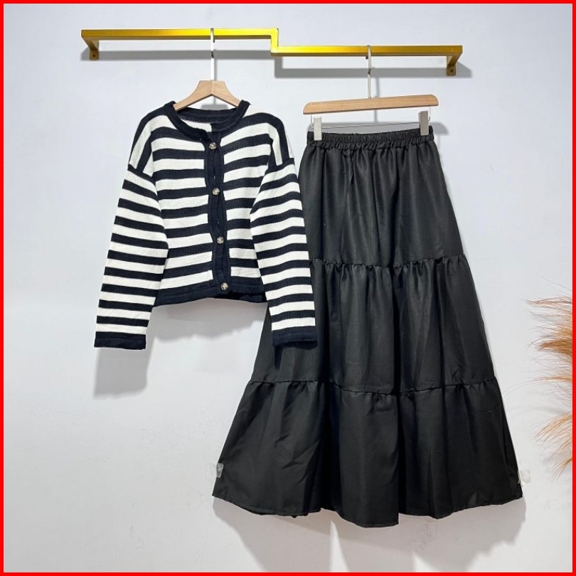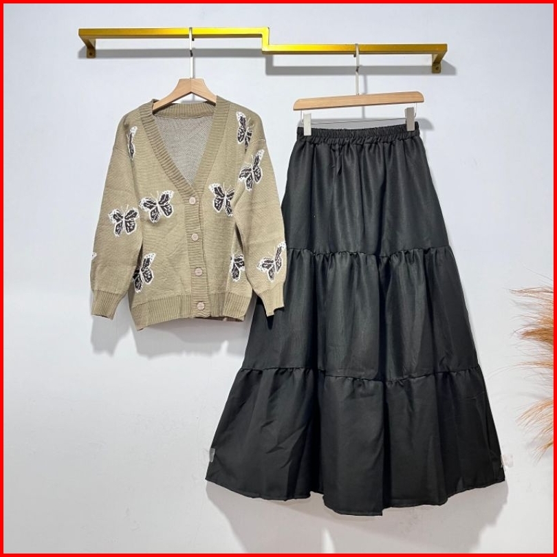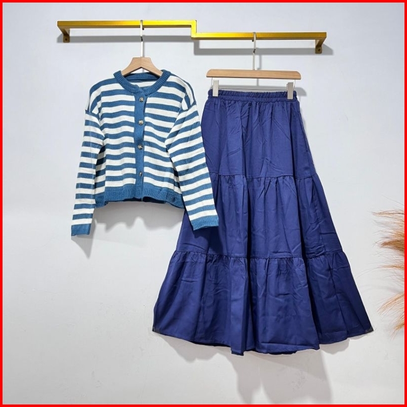 Cardi Rajut Set Rok Susun Remaja Dan Dewasa One Set Cardy Ptemium