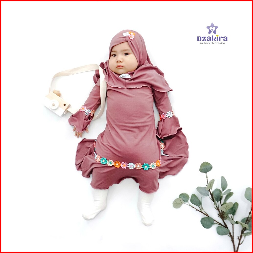 Gamis Bayi 0-2thn Renda Bunga Melati Pelangi Kanaya Plum Jersey Twist Premium Original By Dzakira