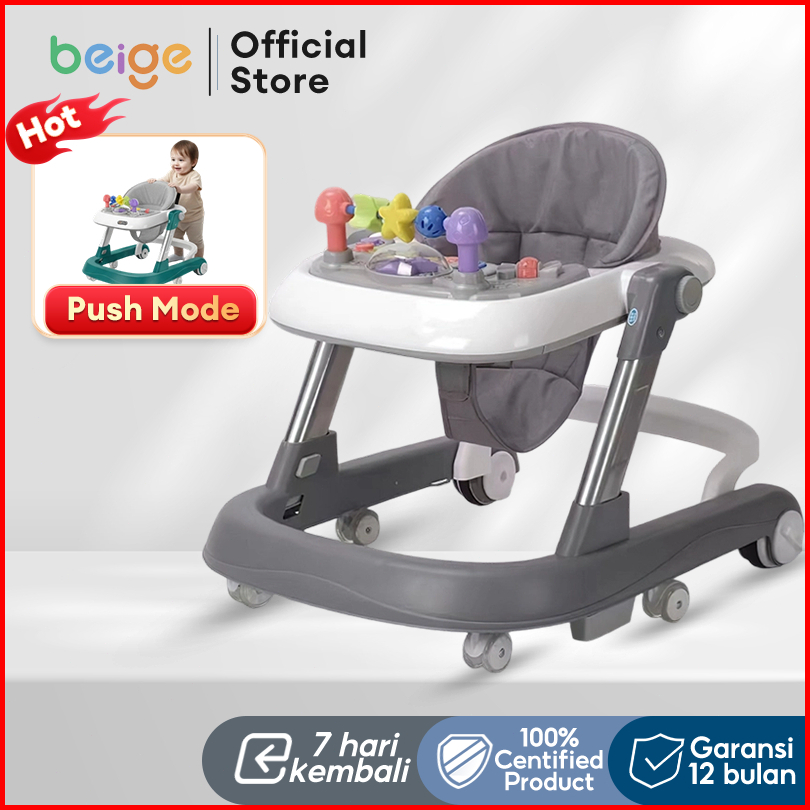 Beige Baby Walker Bayi Multifungsi Lipat Mainan Musik 5 In 1 Beban 30kg