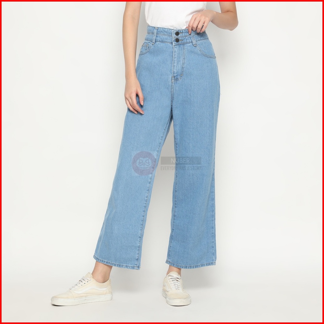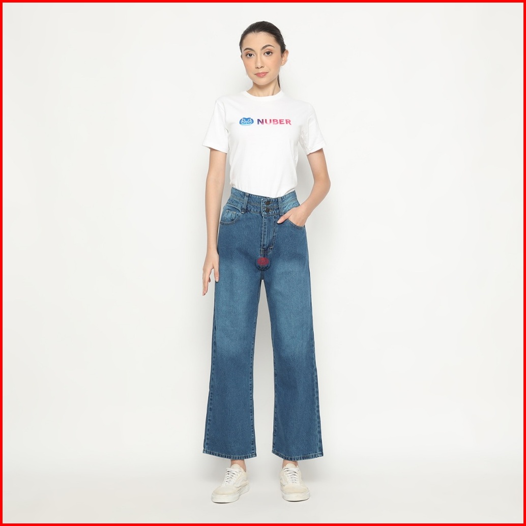 Nuber Loose High Waist Celana Panjang Jeans Wanita 02cintia Navy Hitam Spray