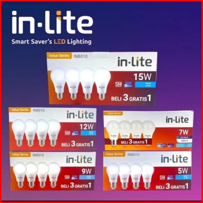 Inlite Inb010 Value Led Bulb Pack 5w 7w 9w 12w 15w 18w In-lite Multipack Inb 010 Beli 3 Gratis 1