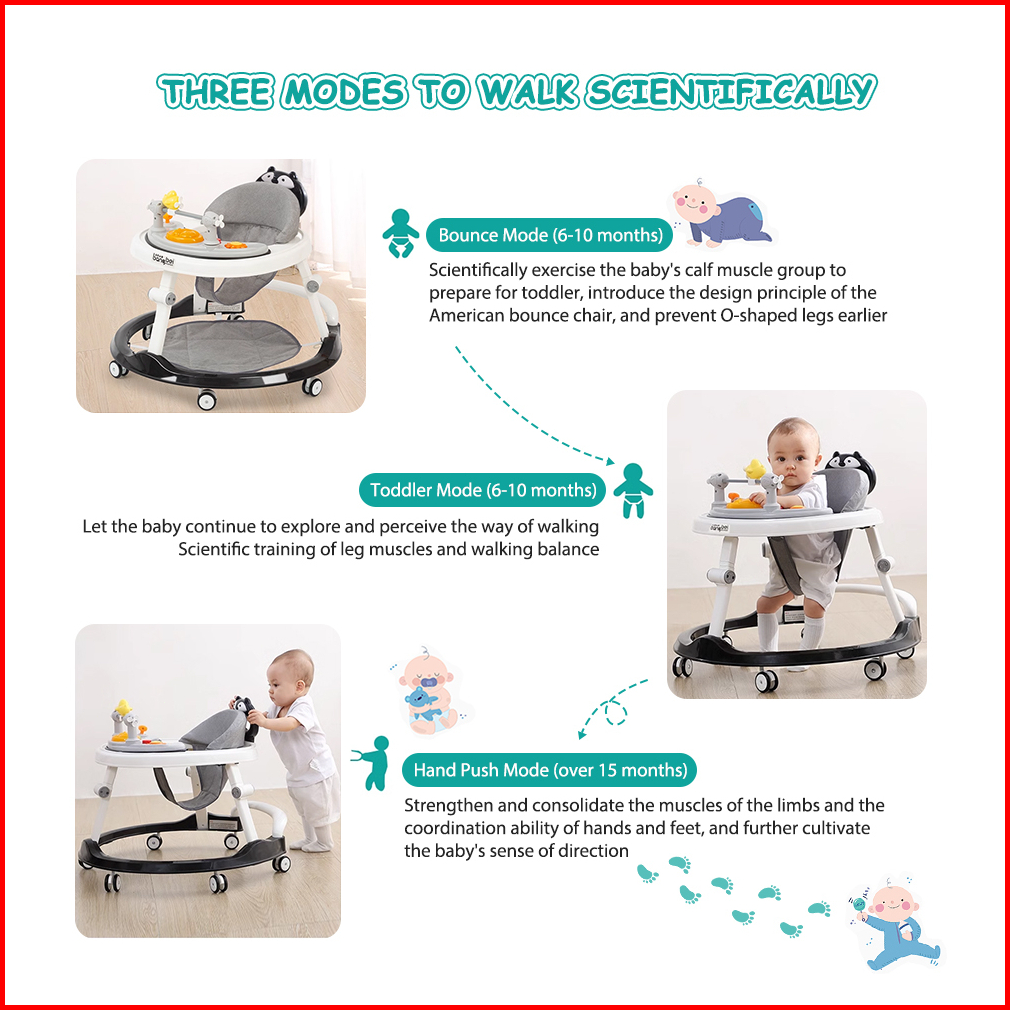 Evianangel Baby Walker Bekas Berjalan Bayi Anak Lipat Mainan Musik Walker Alat Bantu Jalan Bayi Lipat Musik Walker Bayi
