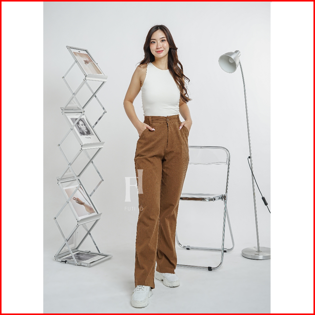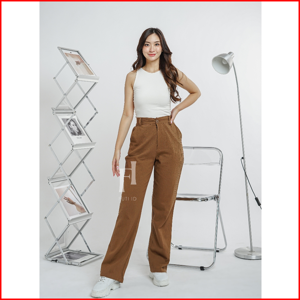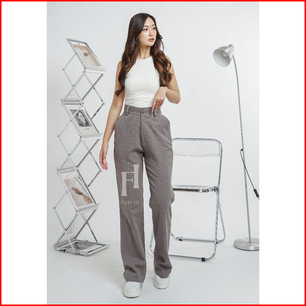 Futi - Celana Cutbray Highwaist Wanita Linen Crinkle Premium