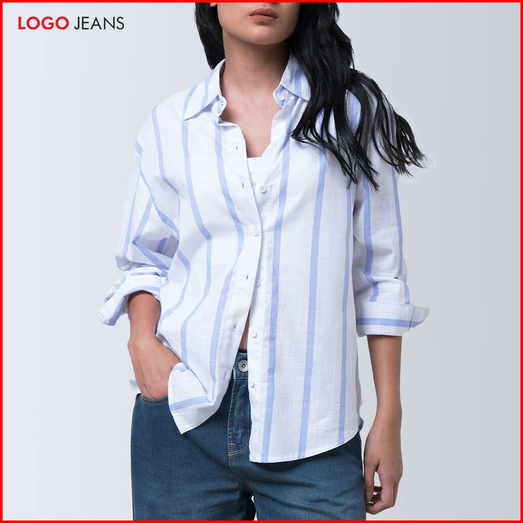 Logo Jeans Kemeja Wanita Juanna White Blue 24a41l5wl
