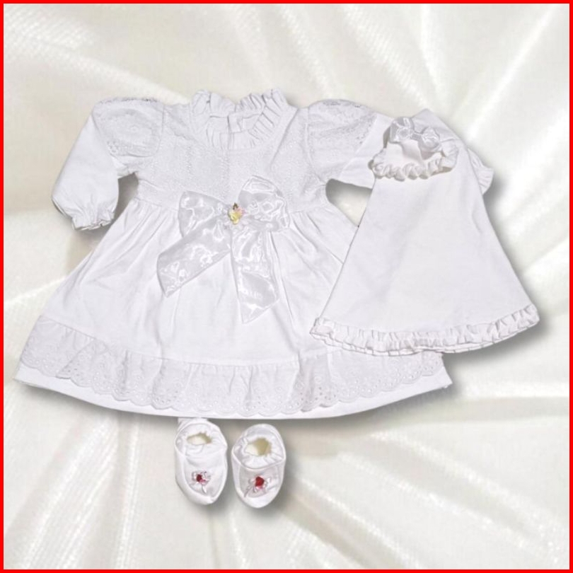 Gamis Brokat Bayi Perempuan 0-4 Bln Baju Gamis Putih Anak Muslim Cewek Mewah Anisah