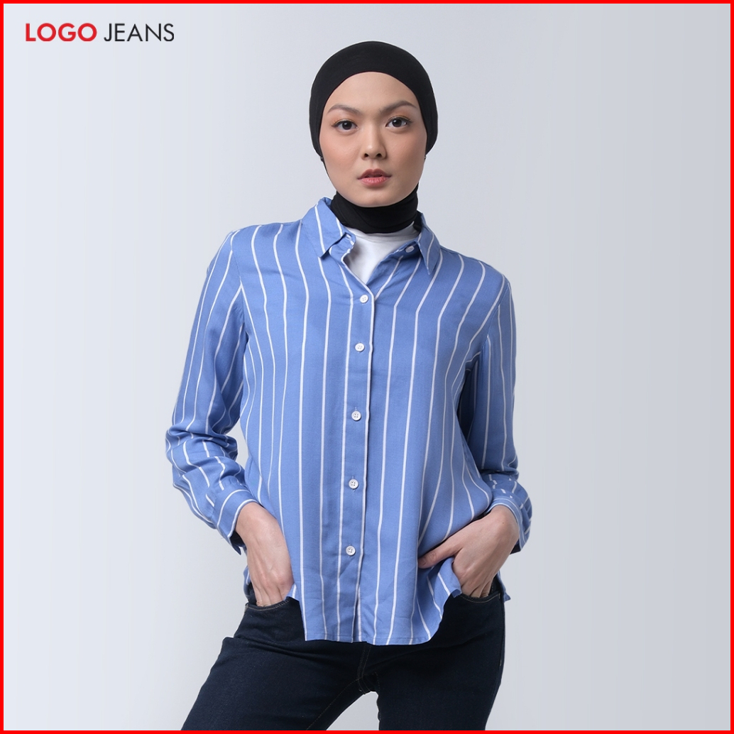 Logo Jeans Kemeja Wanita Mira Blue White 24904l9bi