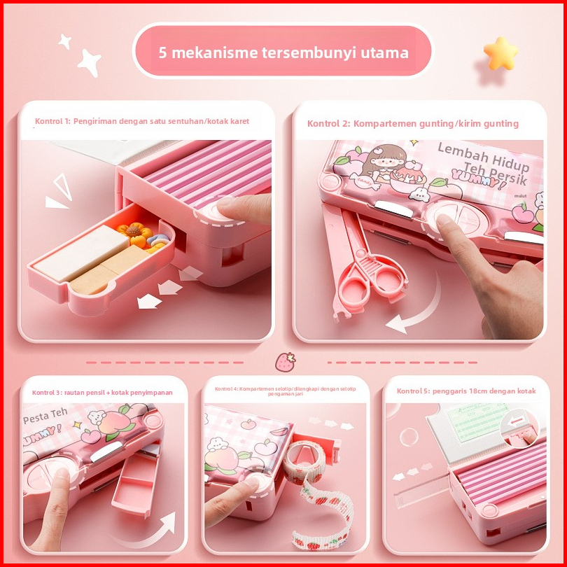 Ready Stockkotak Pensil Multifungsi Kulomi Model Baru Untuk Anak Perempuan Kotak Penyimpanan Alat Tulis Berkapasitas Bes