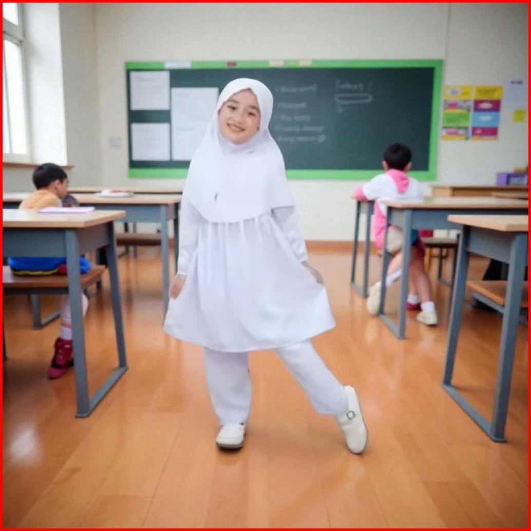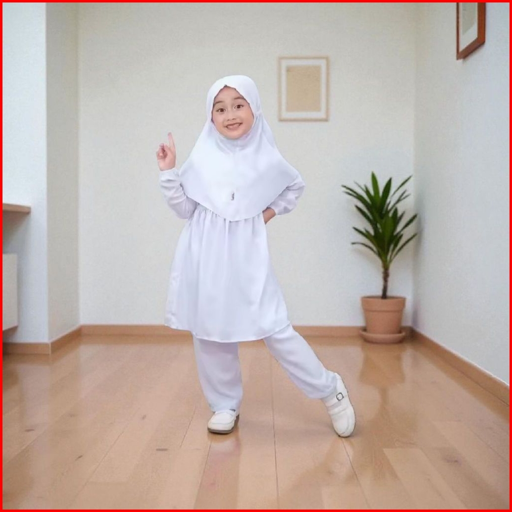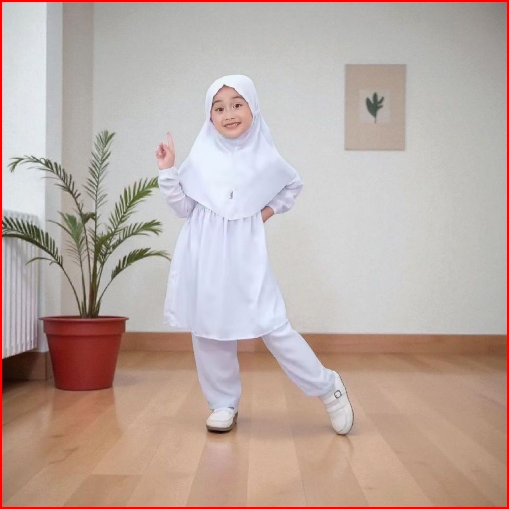 Setelan Baju Muslim Putih Anak Perempuan Manasik Gamis Anak Sethijab Gamis Manasik-haji Tangung Anak Usia 2-13 Thn Dress