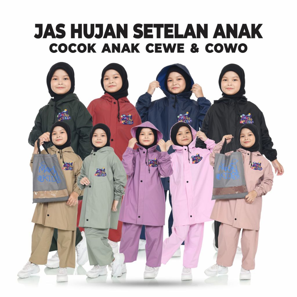 JAS HUJAN ANAK SETELAN TERBARU BAHAN TEBAL LENTUR ANTI REMBES BANYAK WARNA UNGU PINK MERAH