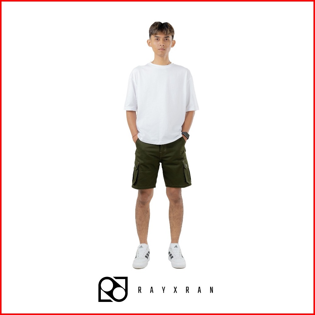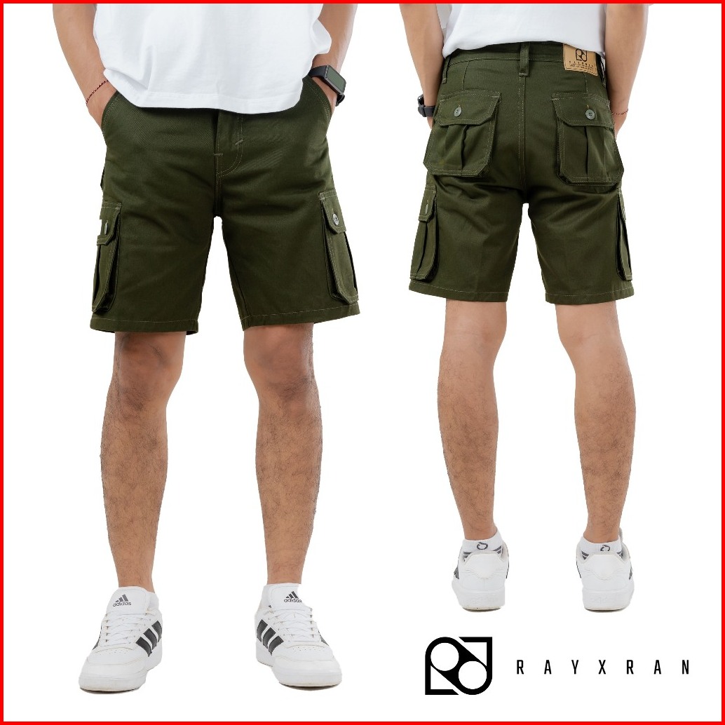 Rayxran Celana Cargo Pendek Pria Basic Green Army