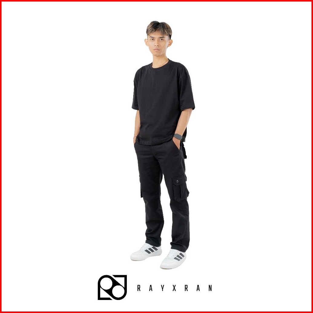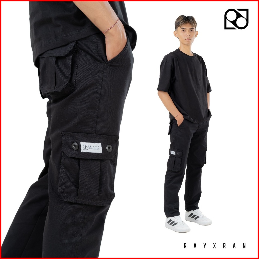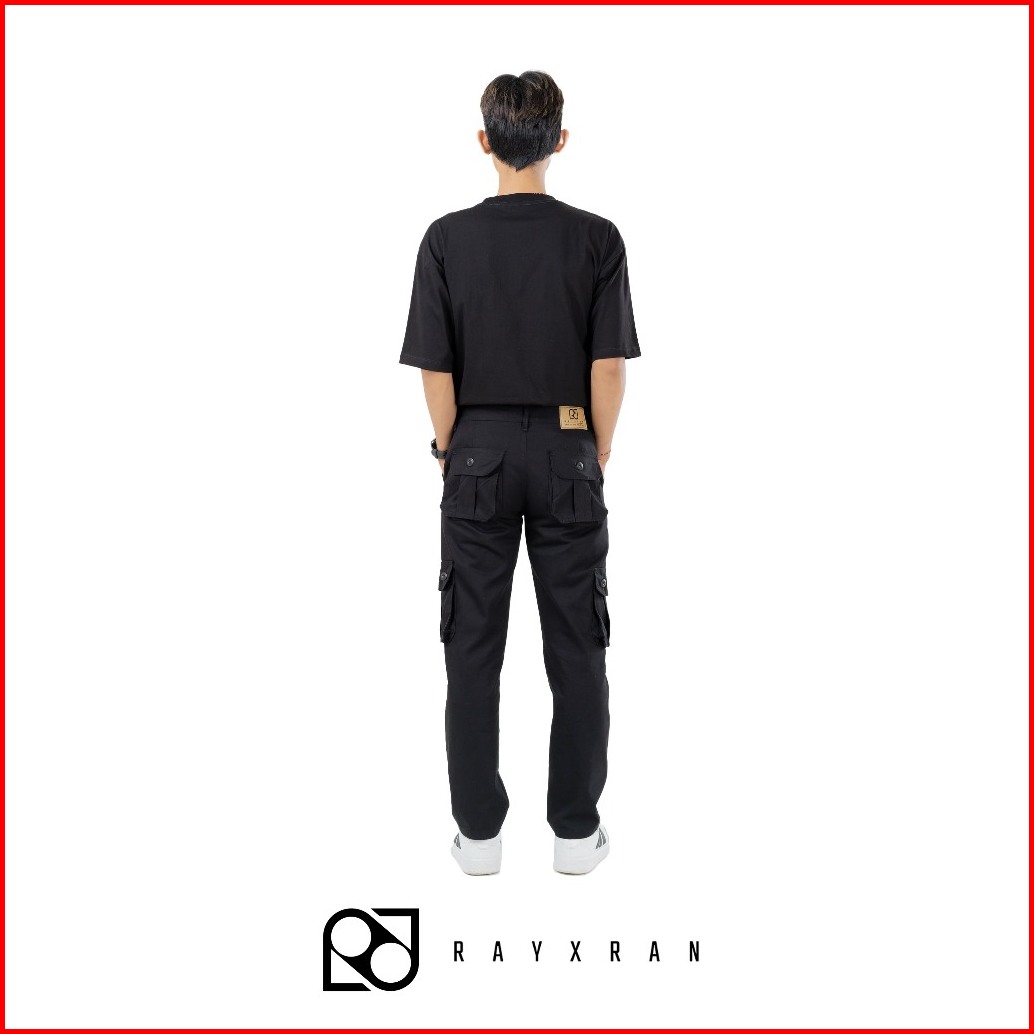 Rayxran Celana Cargo Panjang Pria Basic Hitam Slimfit