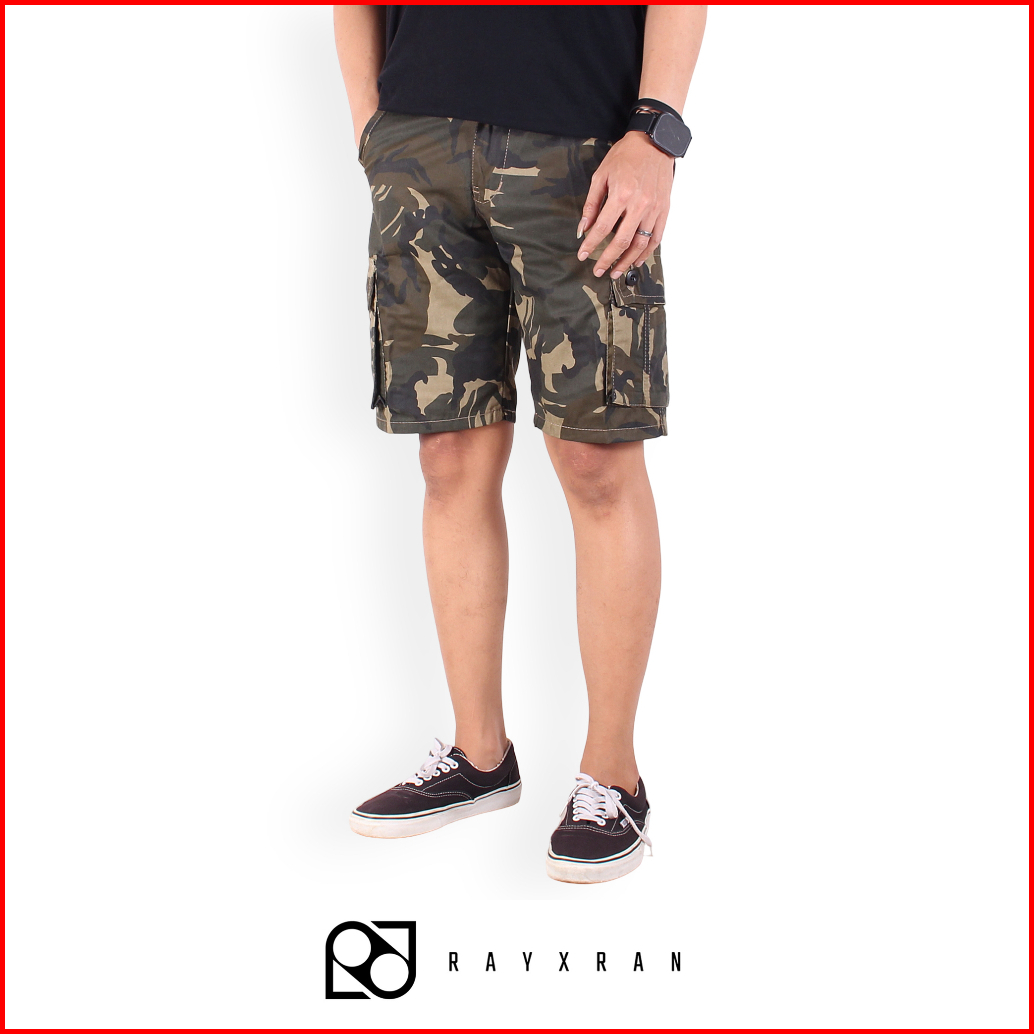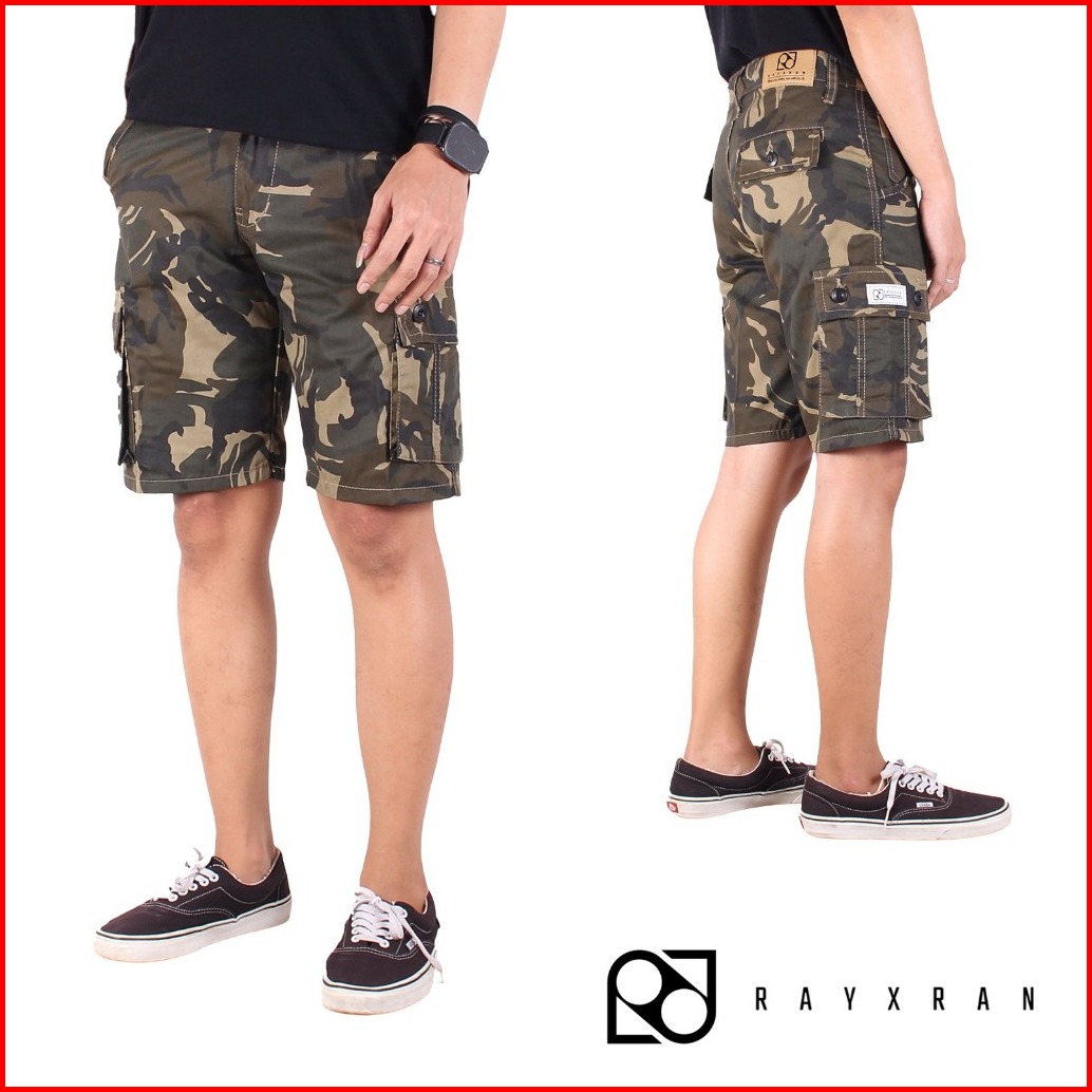 Rayxran Celana Cargo Pendek Pria Loreng Cokelat Short Pants Tactical Santai Original
