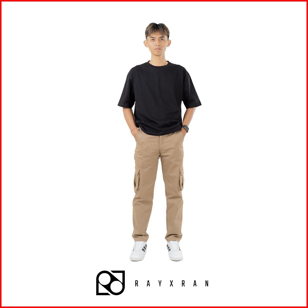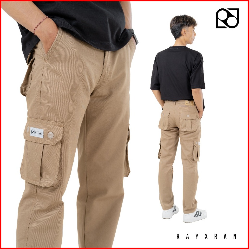 Rayxran Celana Cargo Panjang Pria Basic Mocca Slimfit
