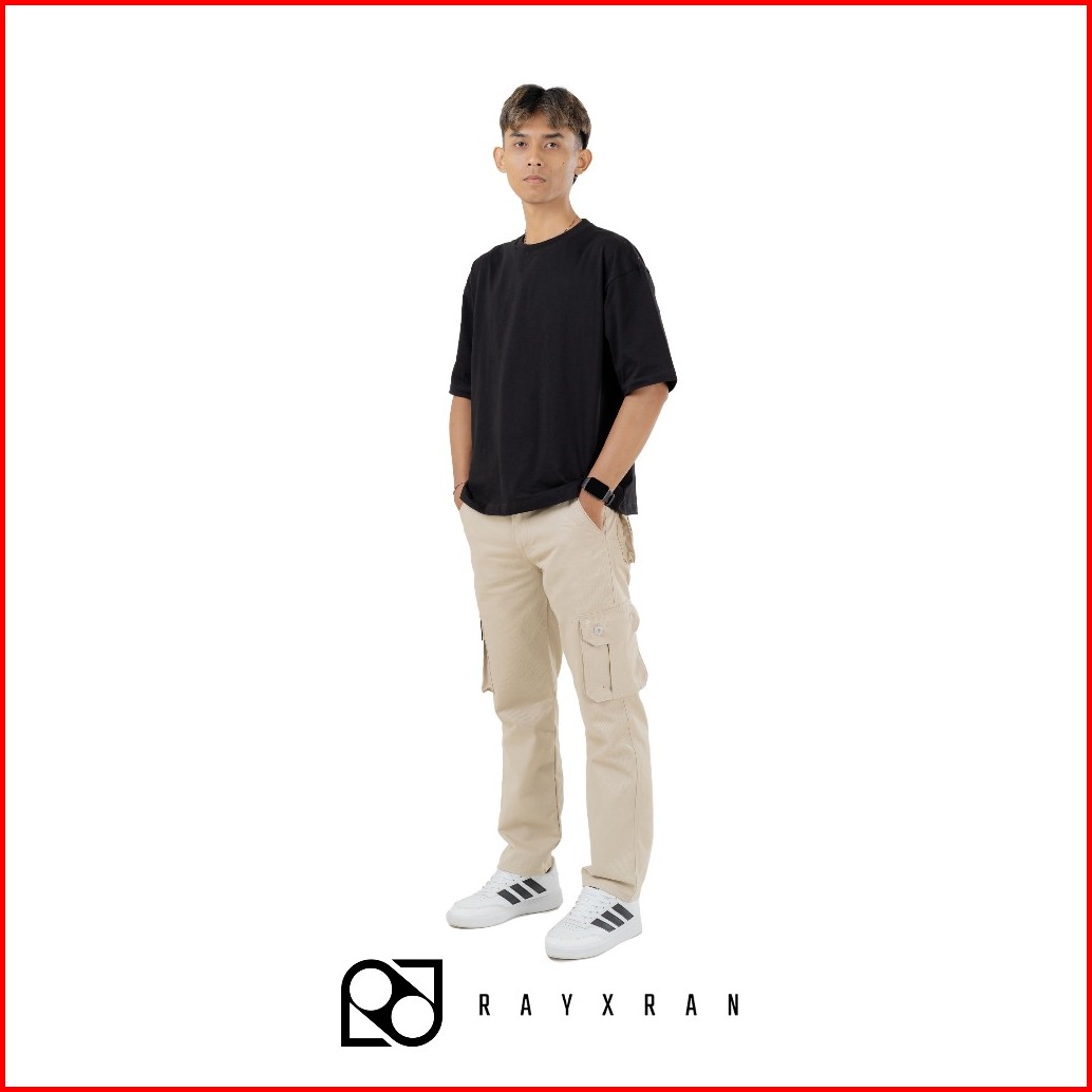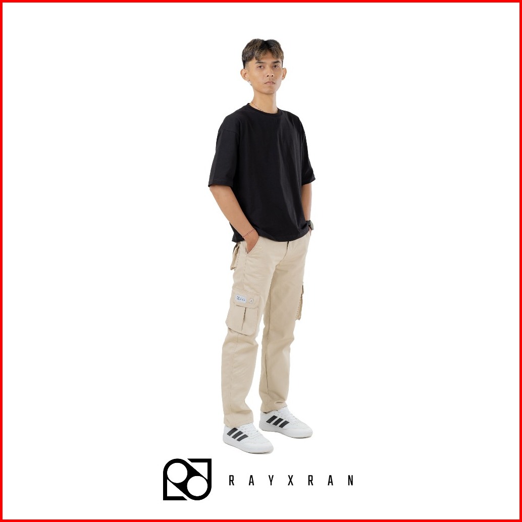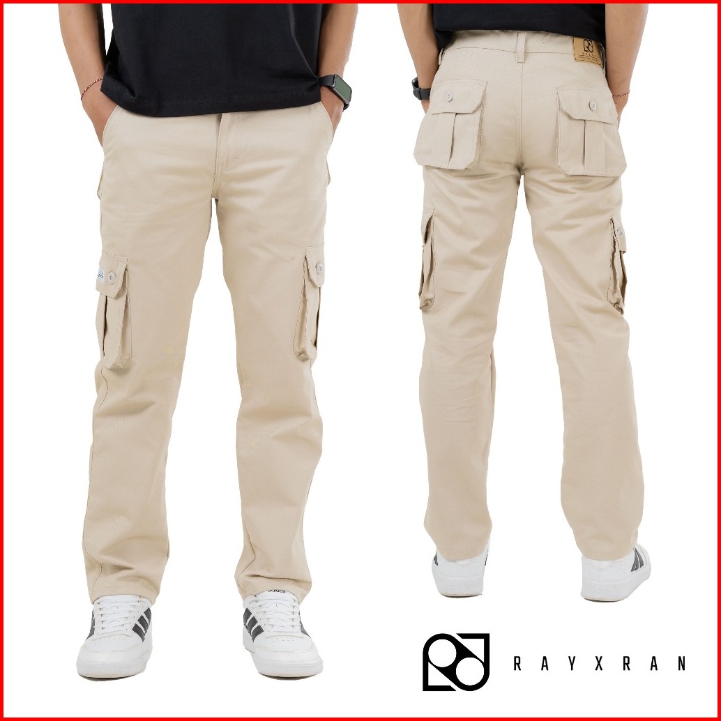 Rayxran Celana Cargo Panjang Pria Basic Cream Slimfit