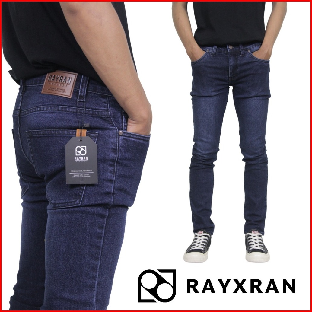 Rayxran Celana Jeans Panjang Pria Basic Biowash Slimfit Stretch